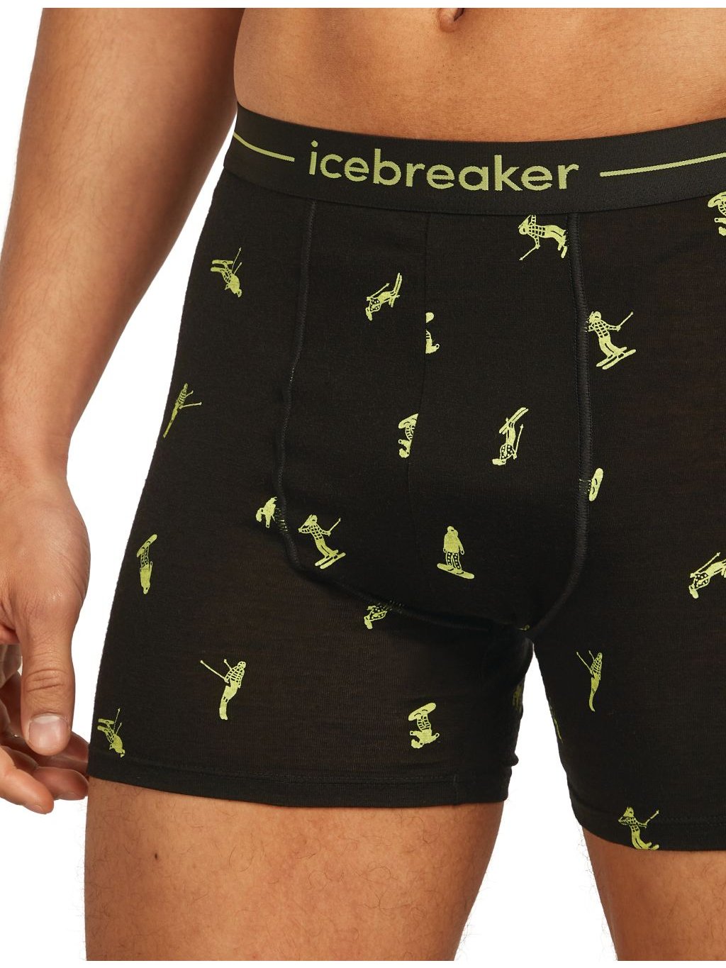 Pánské merino boxerky ICEBREAKER Mens 150 Anatomica Boxers Ski Day, Black/Peridot/Aop