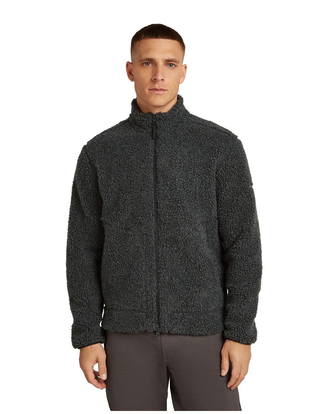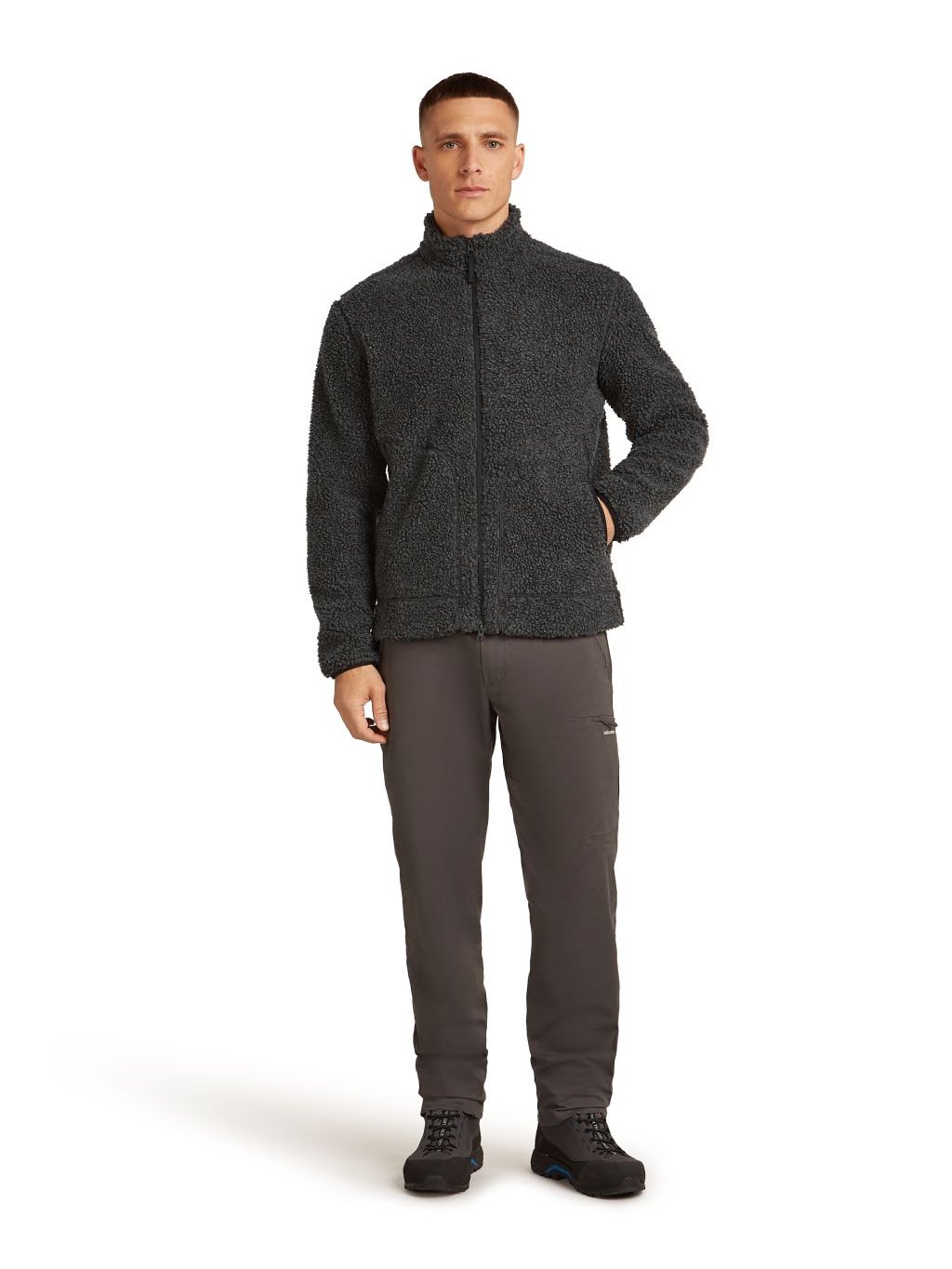Pánská merino bunda ICEBREAKER Mens 960 RealFleece High Pile LS Zip, Jet Heather/Black