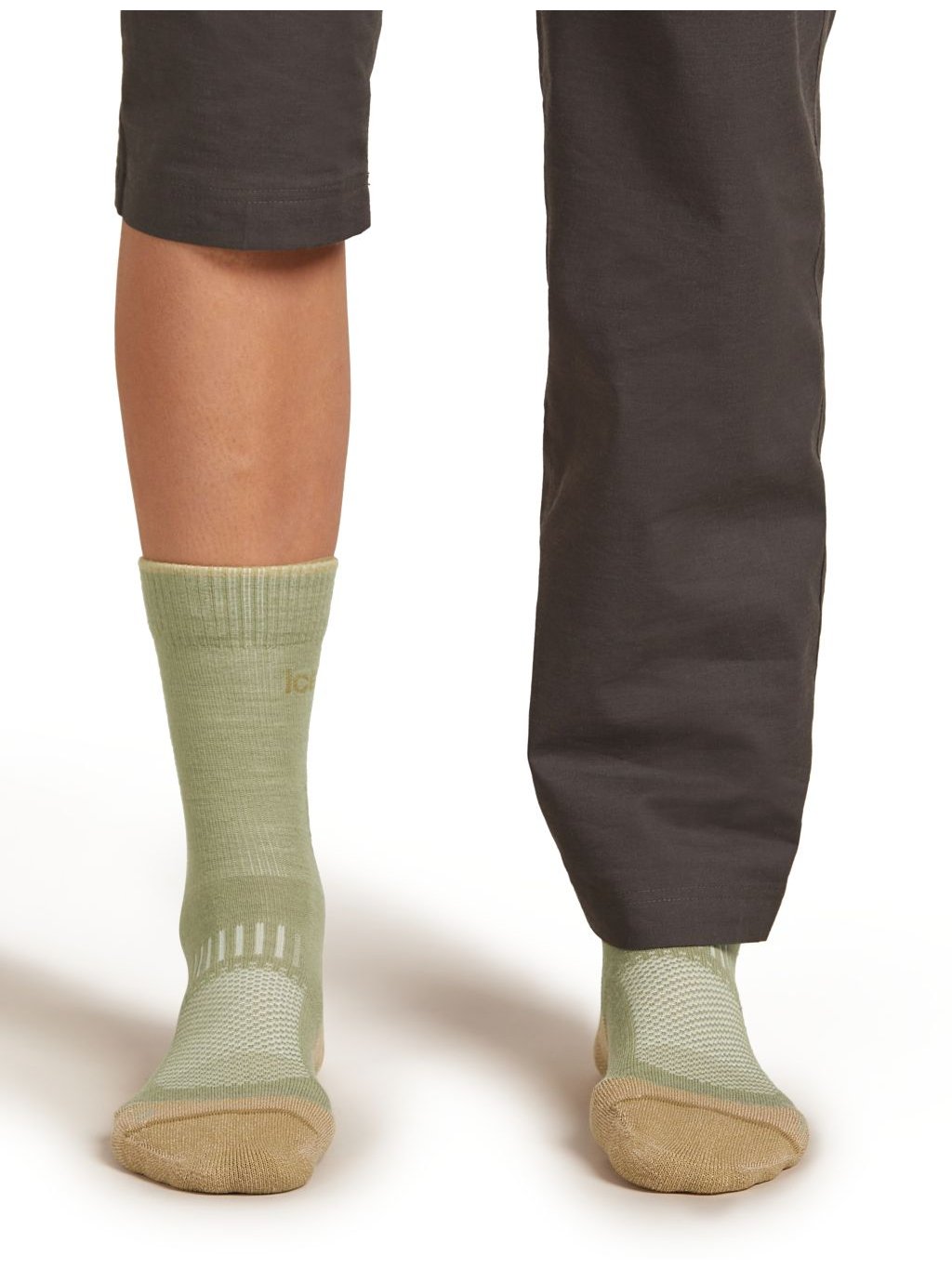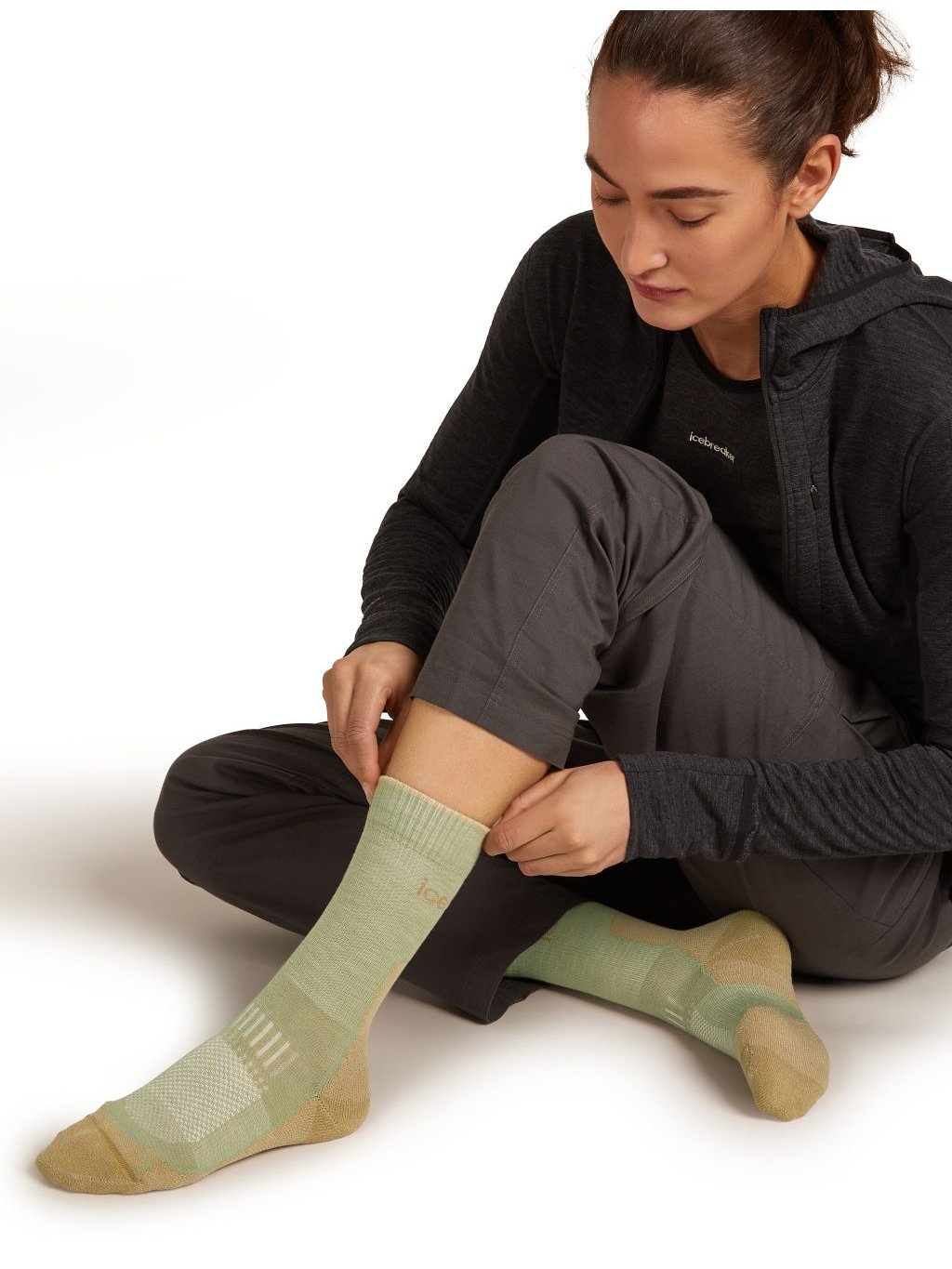 Dámské merino turistické ponožky ICEBREAKER Wmns Hike+ Light Crew, Lichen/Sand