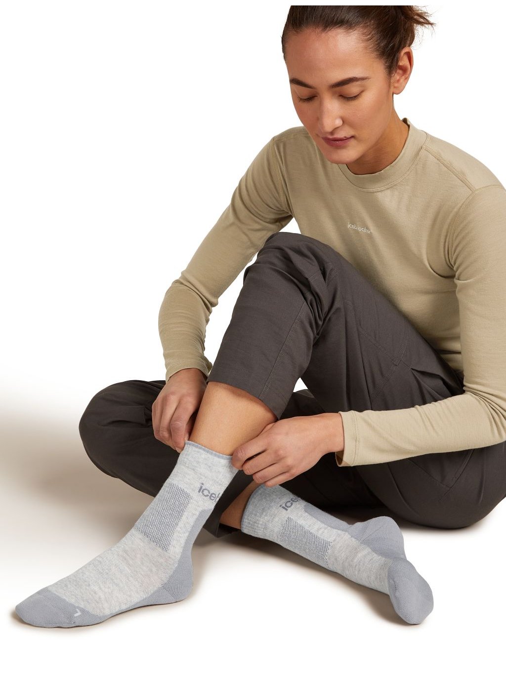 Dámské merino turistické ponožky ICEBREAKER Wmns Hike+ Medium Crew, Blizzard Heather/Alloy
