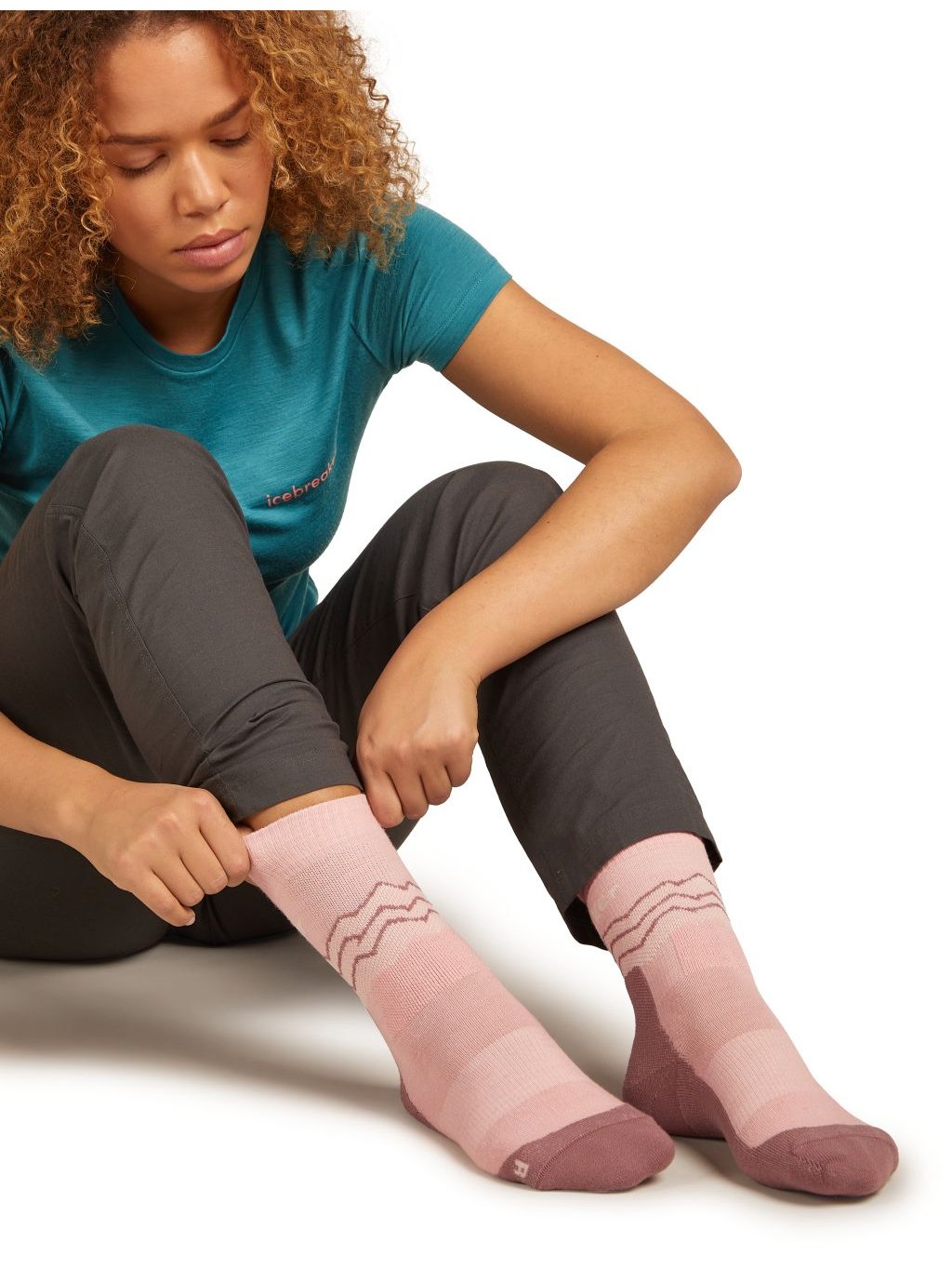 Dámské merino turistické ponožky ICEBREAKER Wmns Hike+ Medium Crew Across the Peaks, Blush/Summit/Ecru Heather