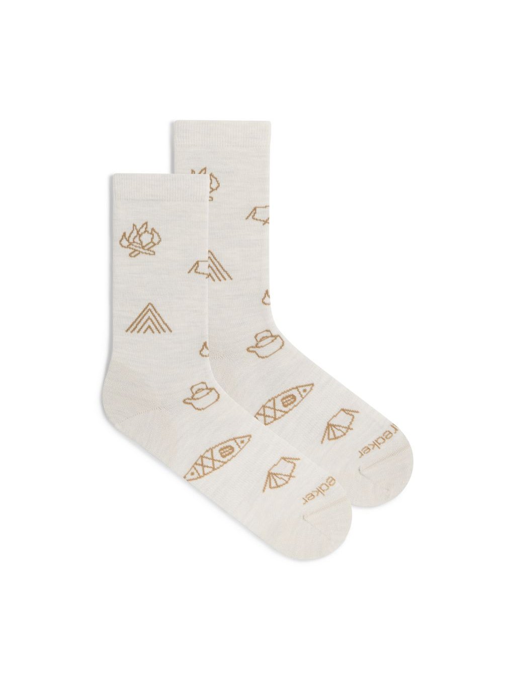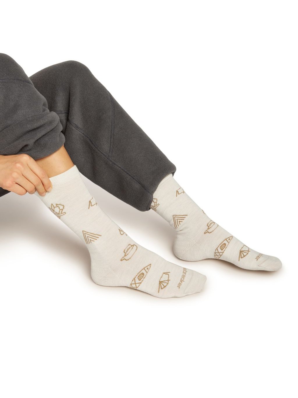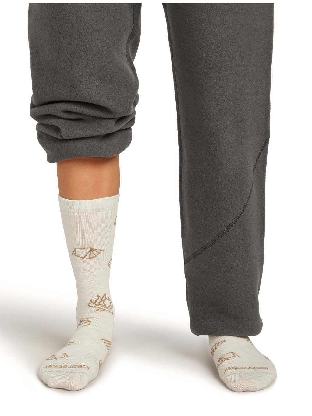 Dámské městské merino ponožky ICEBREAKER Wmns Lifestyle_Ultralight Crew Camp Ess, Ecru Heather/Sand