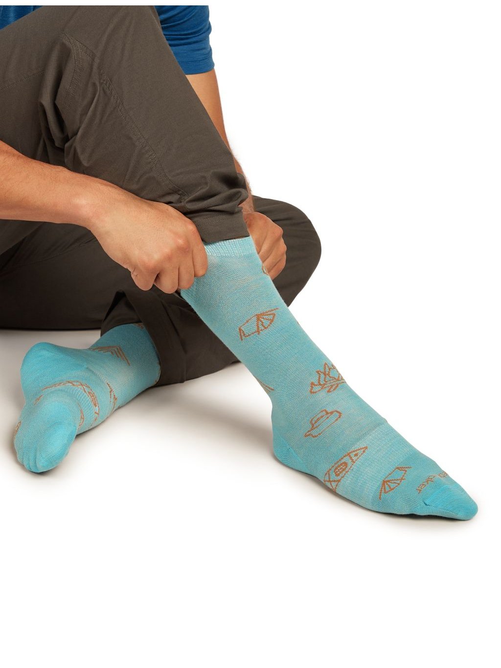 Pánské městské merino ponožky ICEBREAKER Mens Lifestyle_Ultralight Crew Camp Ess, Hydro/Trail