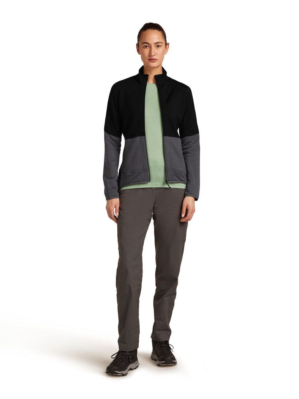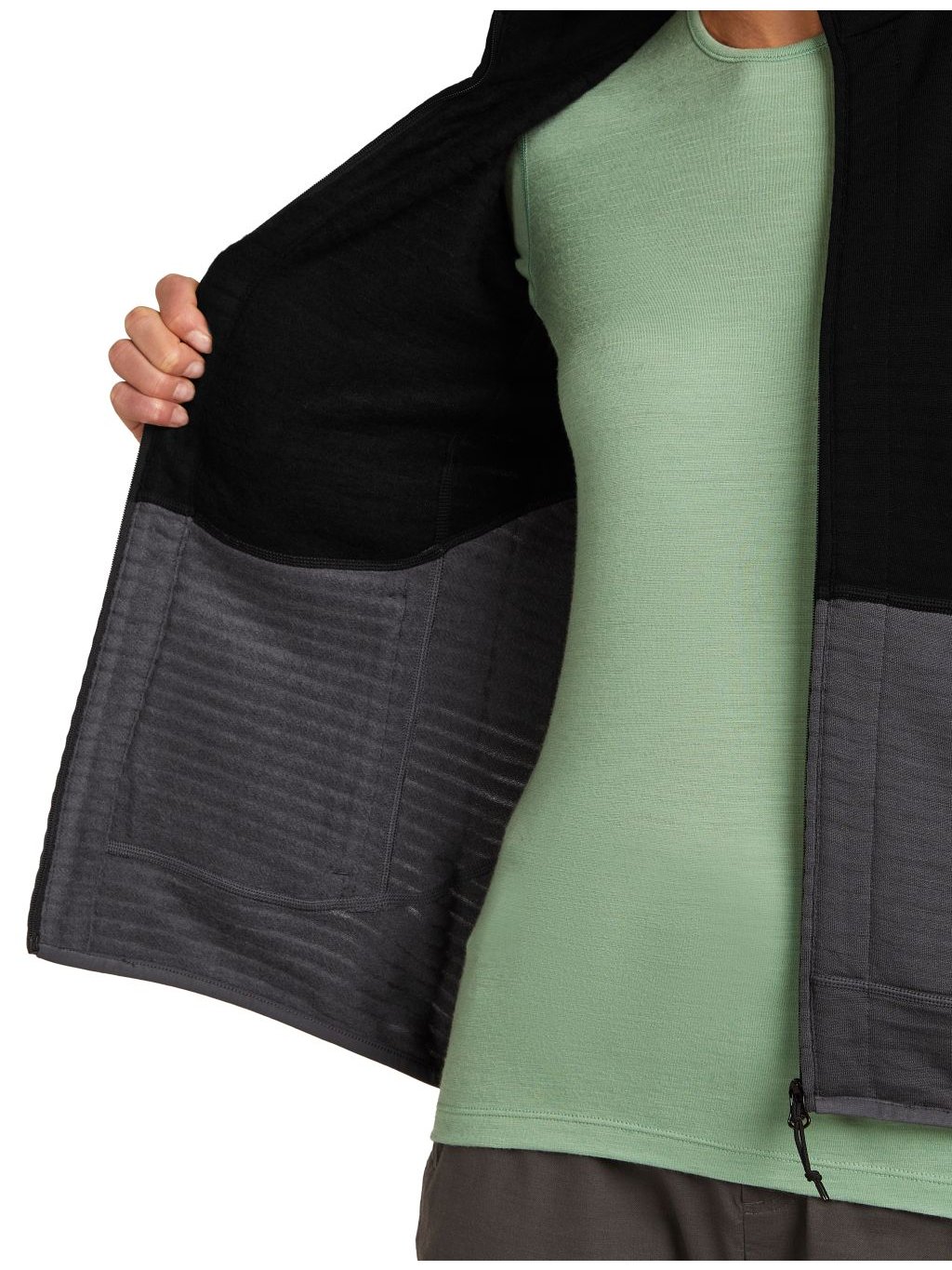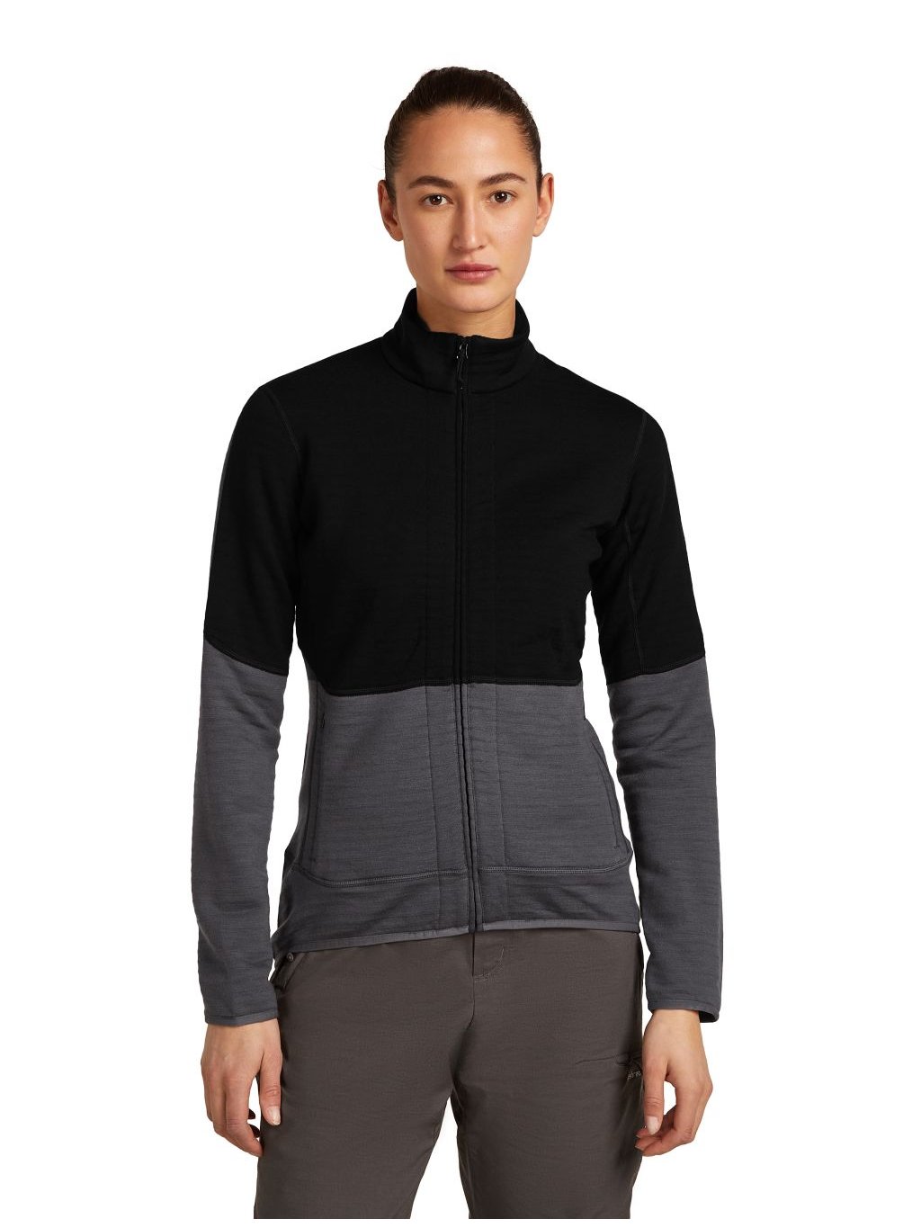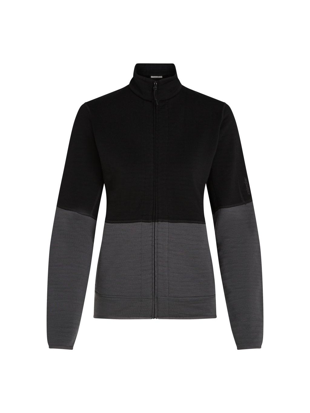 Dámská merino mikina ICEBREAKER Wmns 400 RealFleece Descender LS Zip, Black/Obsidian/Cb