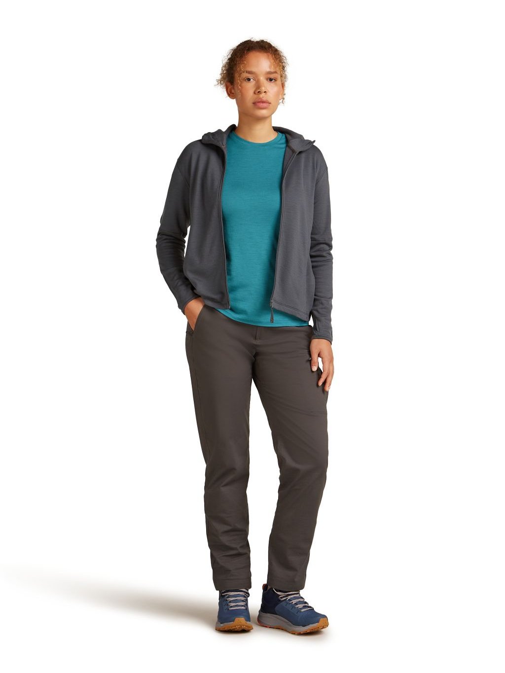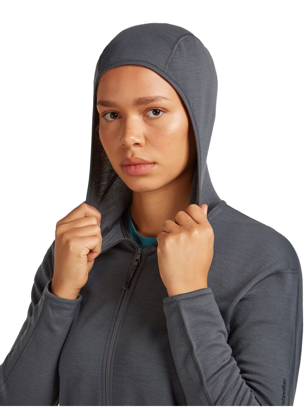 Dámská merino mikina s kapucí ICEBREAKER Wmns 360 Realfleece Elemental LS Zip Hood, Obsidian