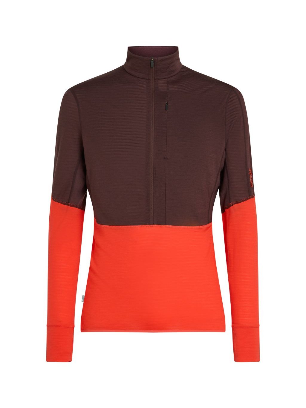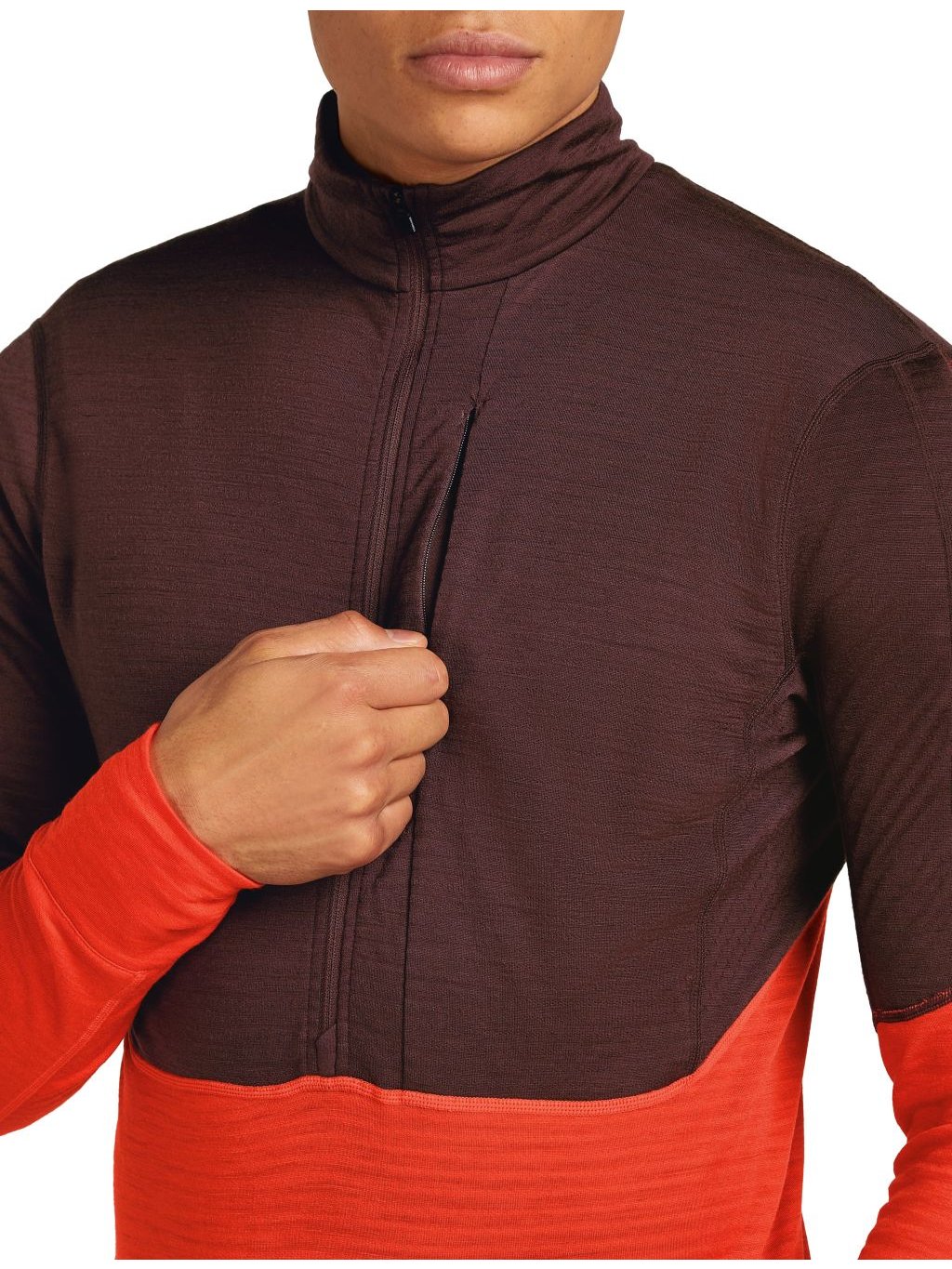 Pánská merino mikina ICEBREAKER Mens 200 Realfleece Descender LS Half Zip, Java/Fervid/Cb
