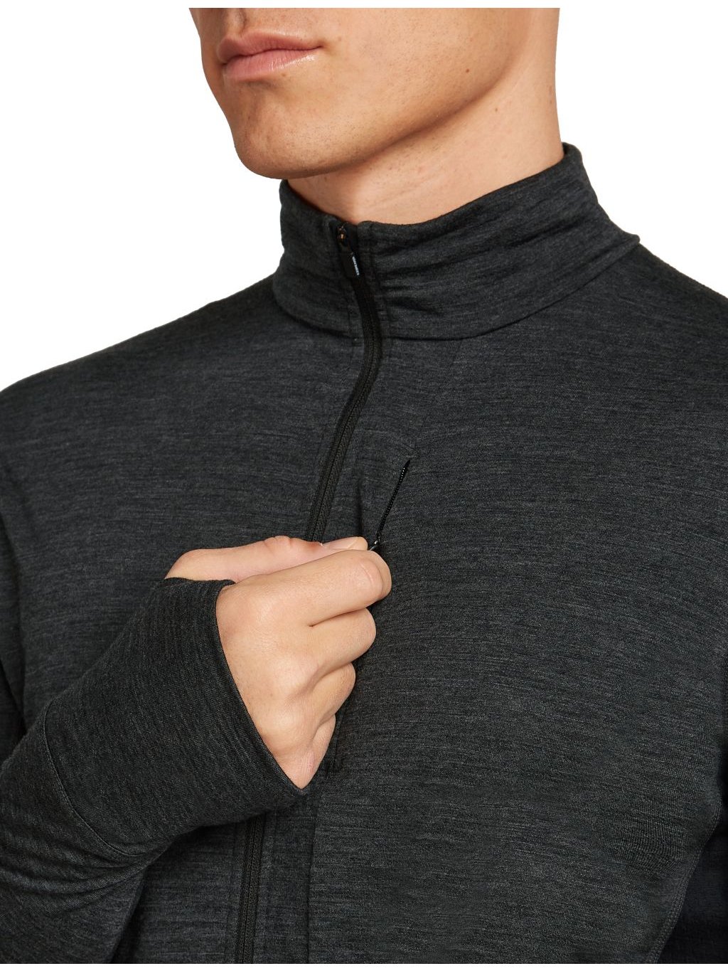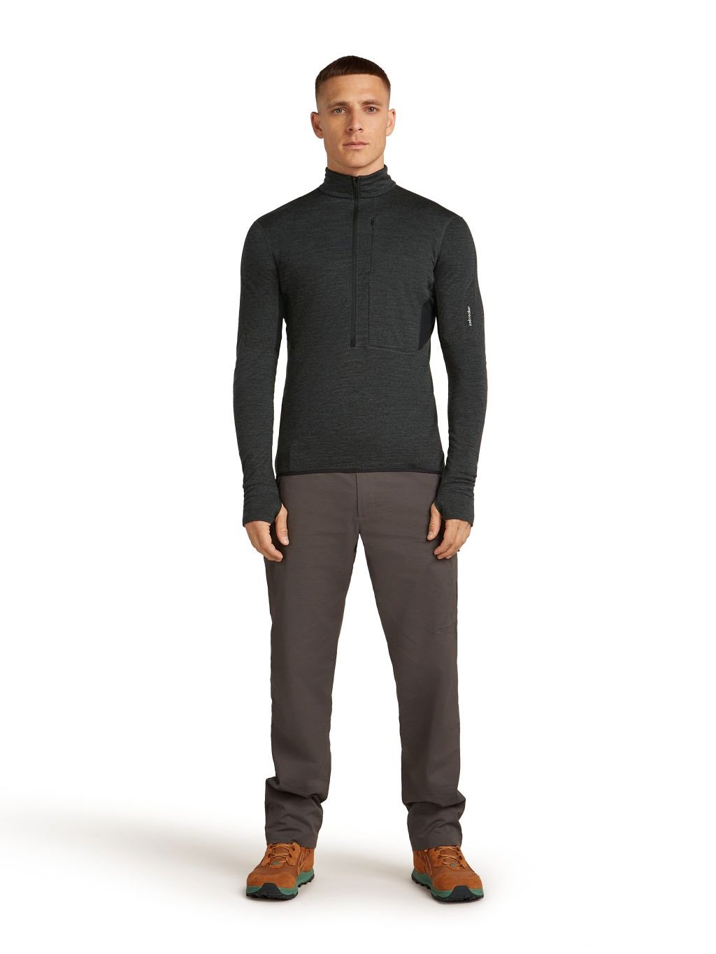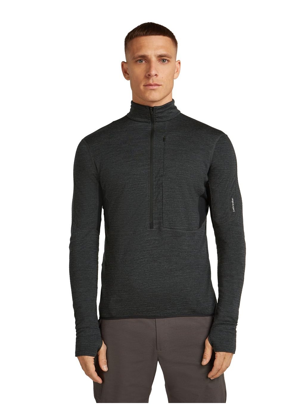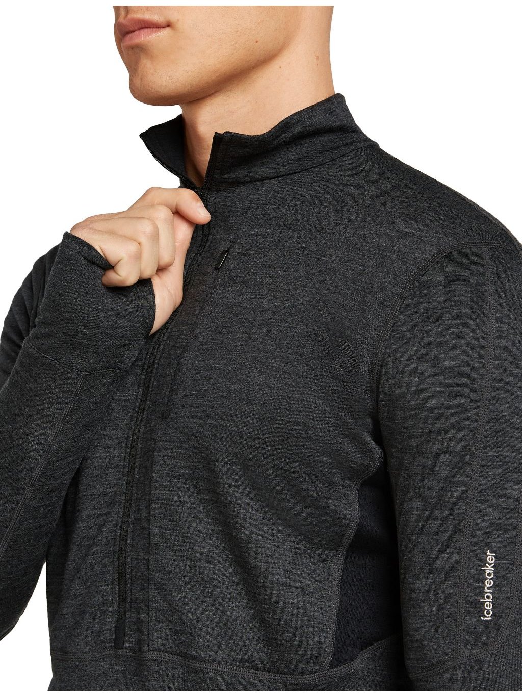 Pánská merino mikina ICEBREAKER Mens 200 Realfleece Descender LS Half Zip, Jet Heather/Black/Cb
