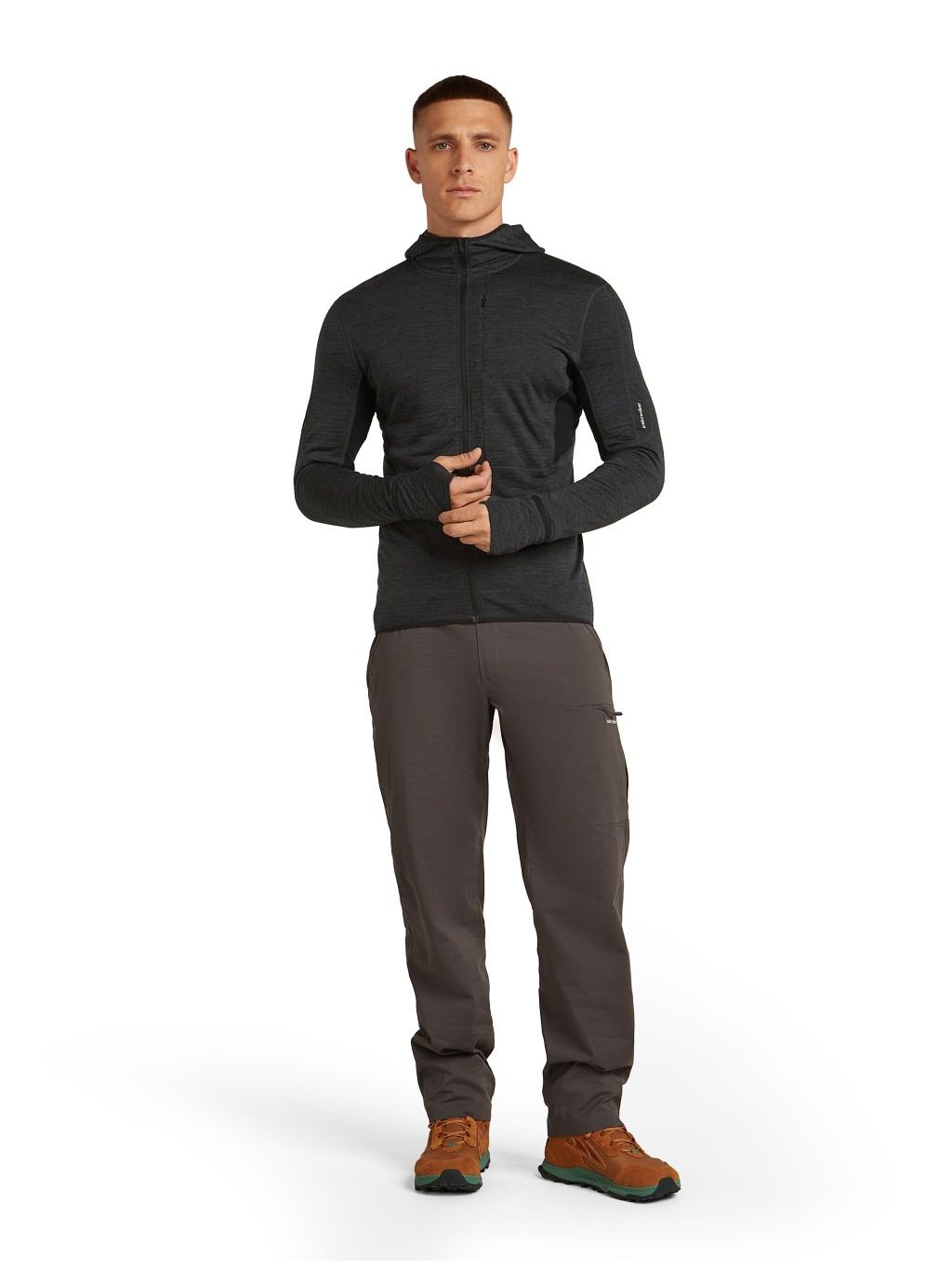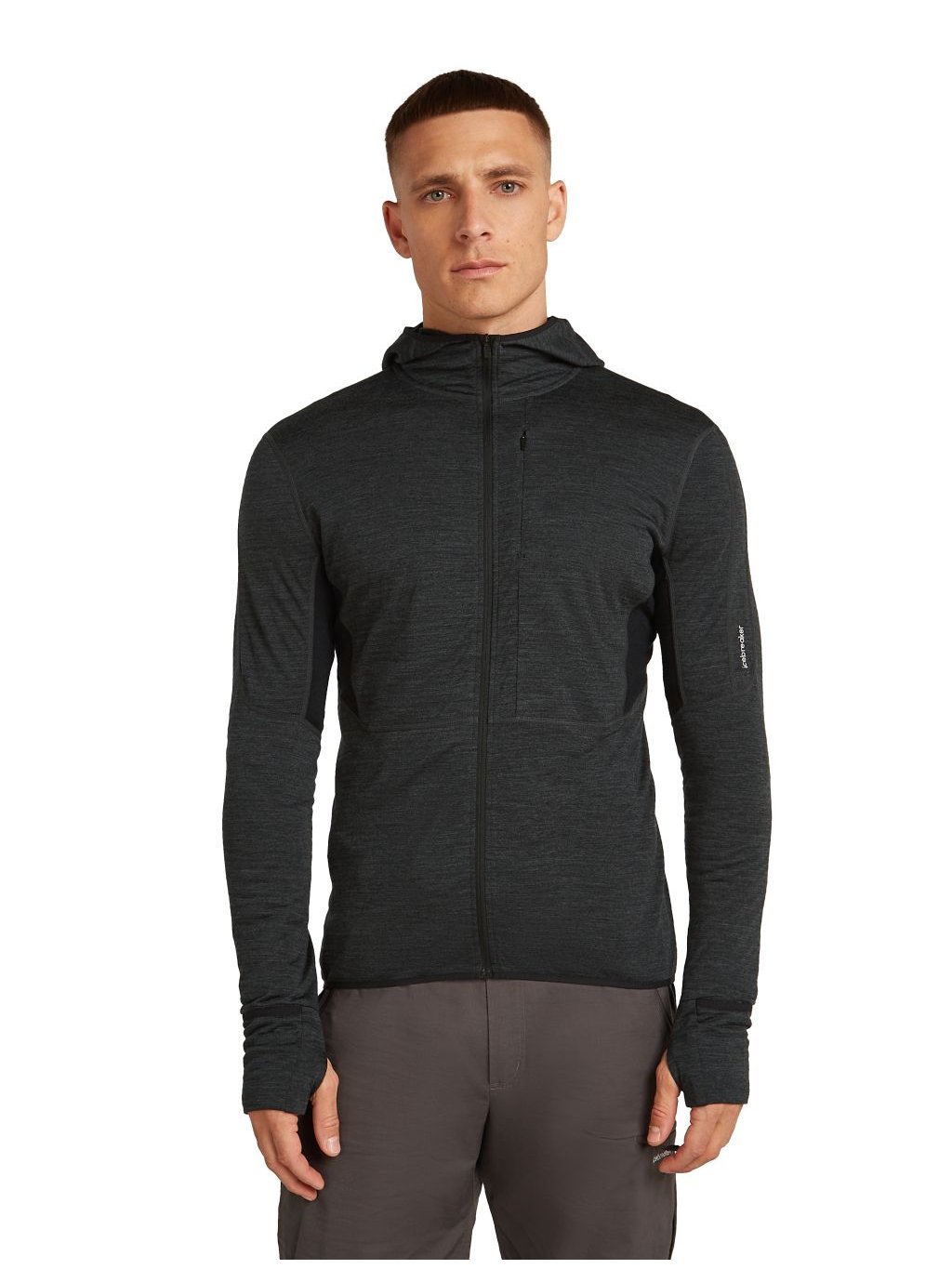 Pánská merino mikina ICEBREAKER Mens 200 Realfleece Descender LS Zip Hood, Jet Heather/Black/Cb