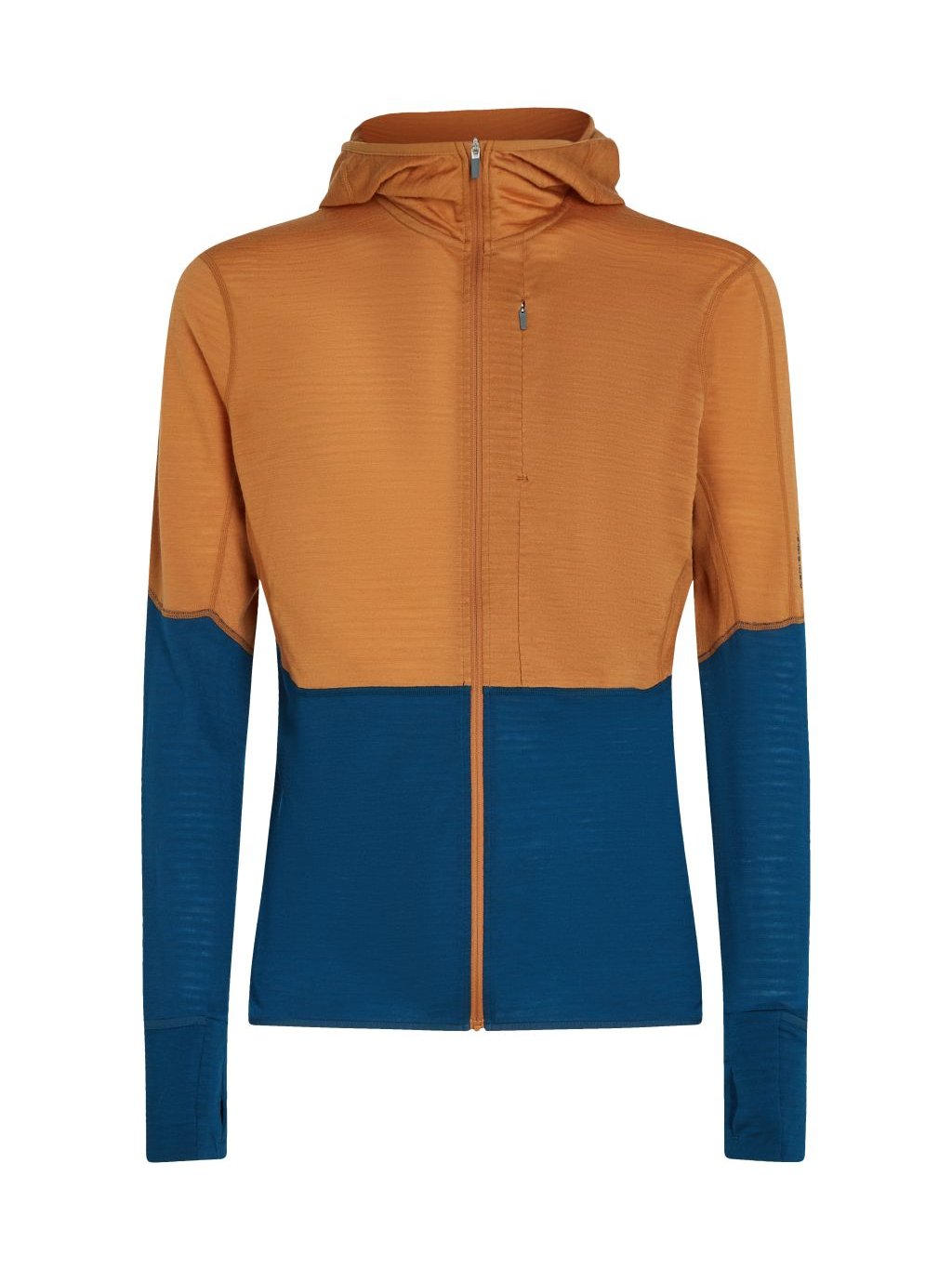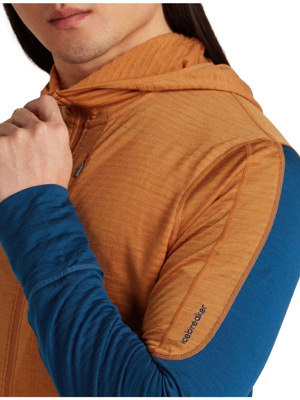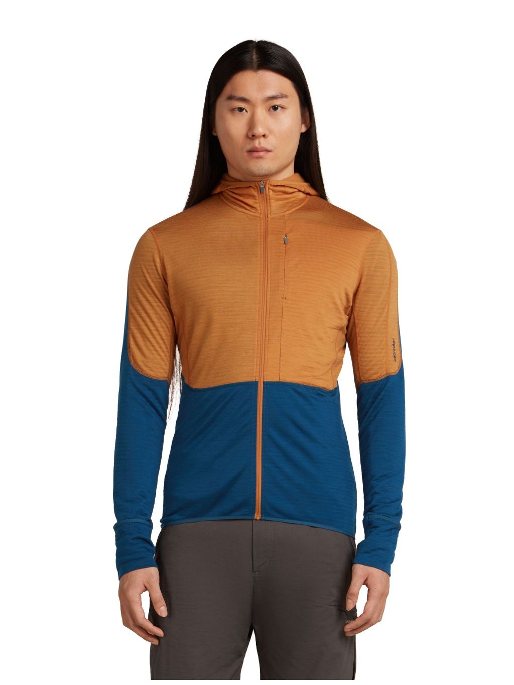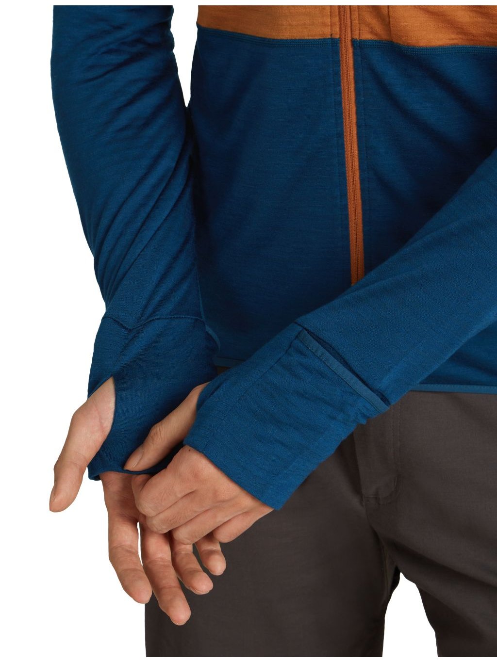 Pánská merino mikina ICEBREAKER Mens 200 Realfleece Descender LS Zip Hood, Trail/Atlantis/Cb