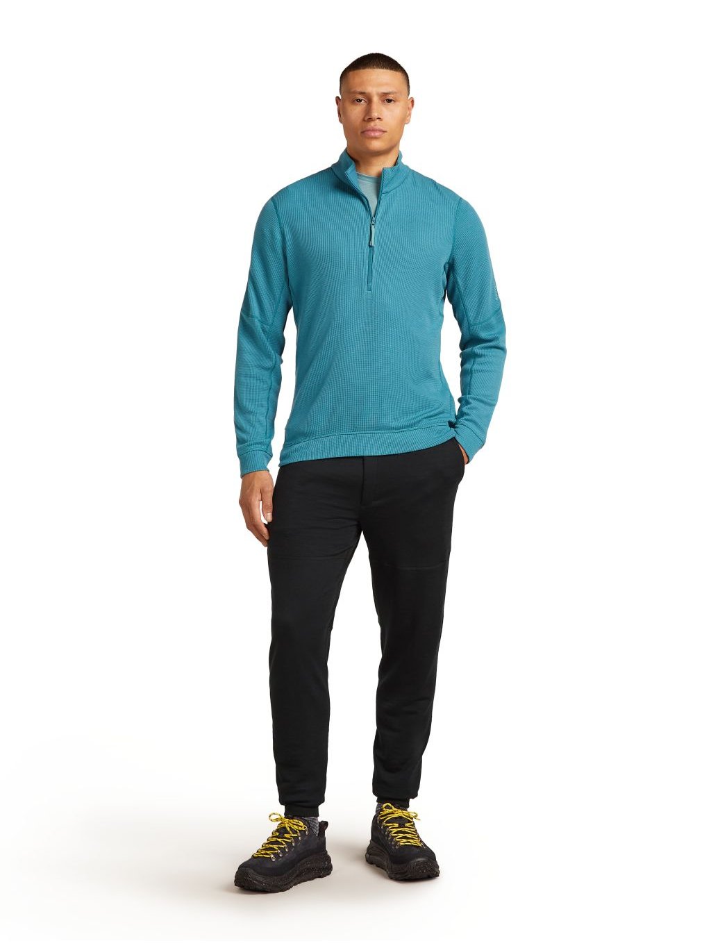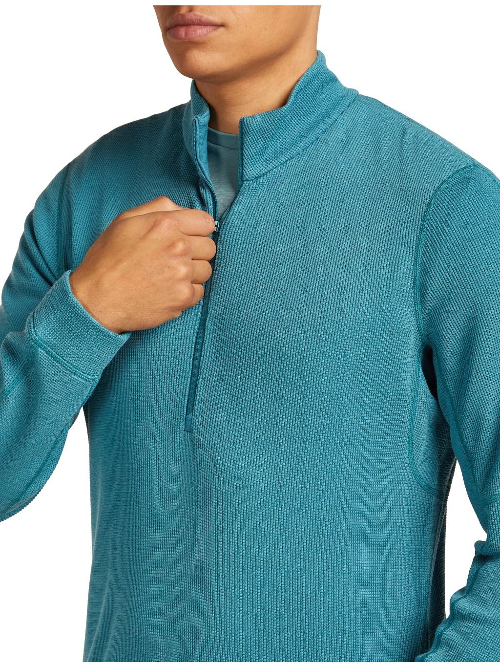 Pánská merino mikina ICEBREAKER Mens 260 Waffle Knit Wander LS Half Zip, Topaz