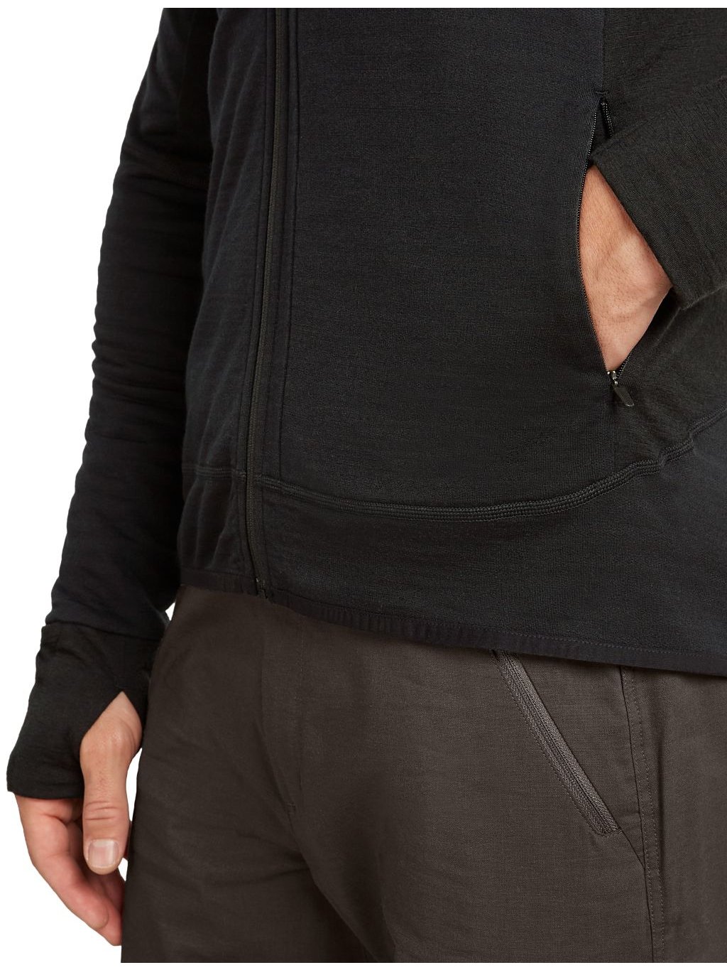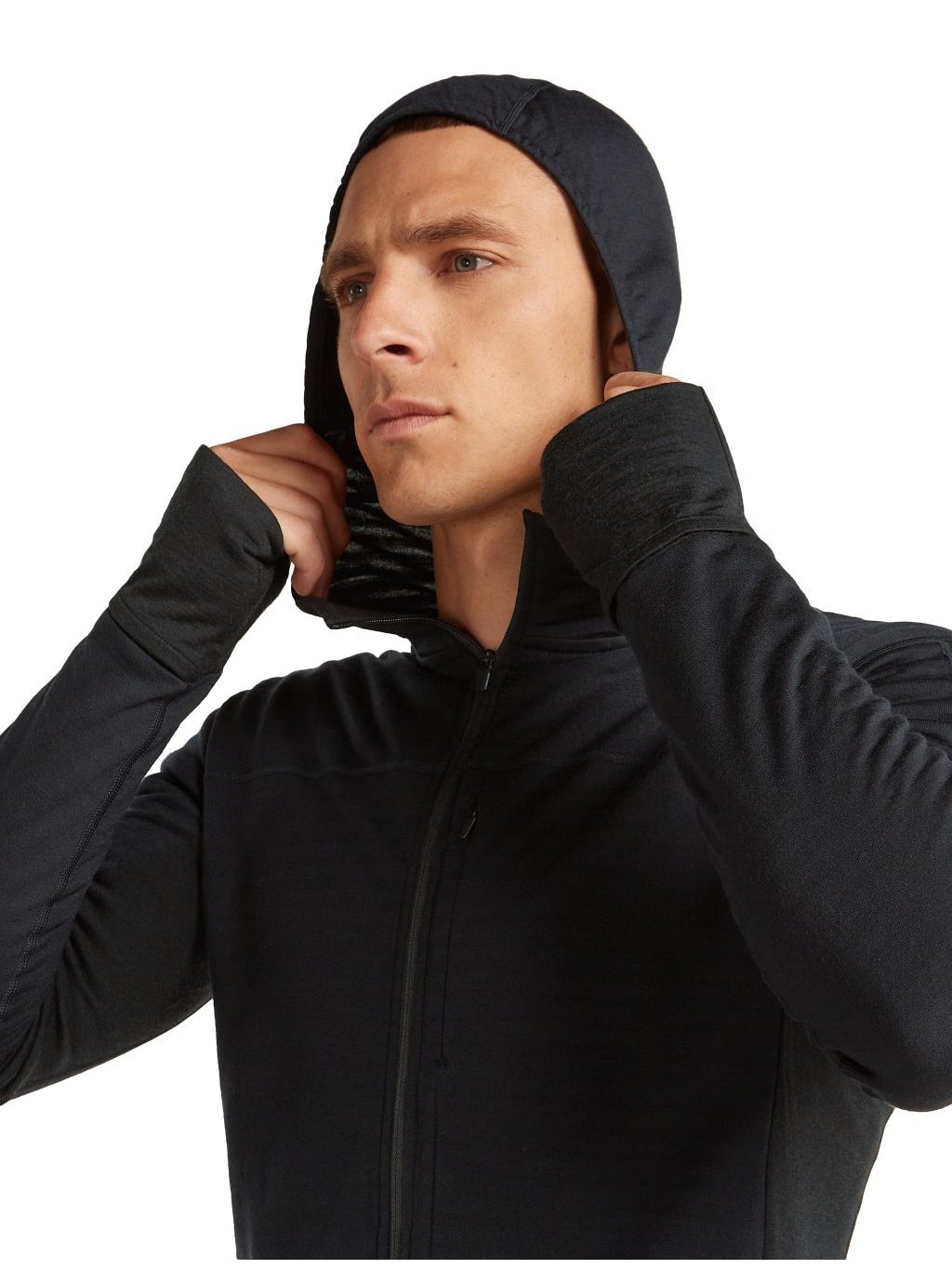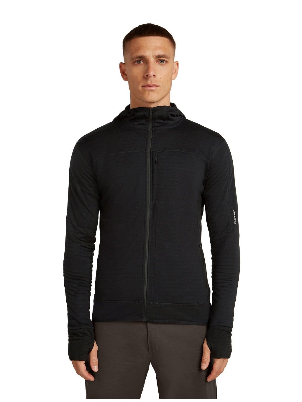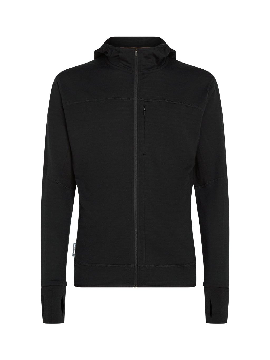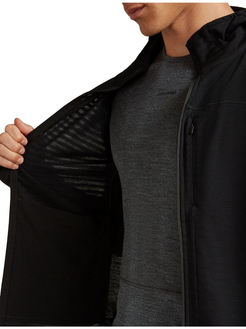 Pánská merino mikina ICEBREAKER Mens 300 RealFleece Descender LS Zip Hood, Black