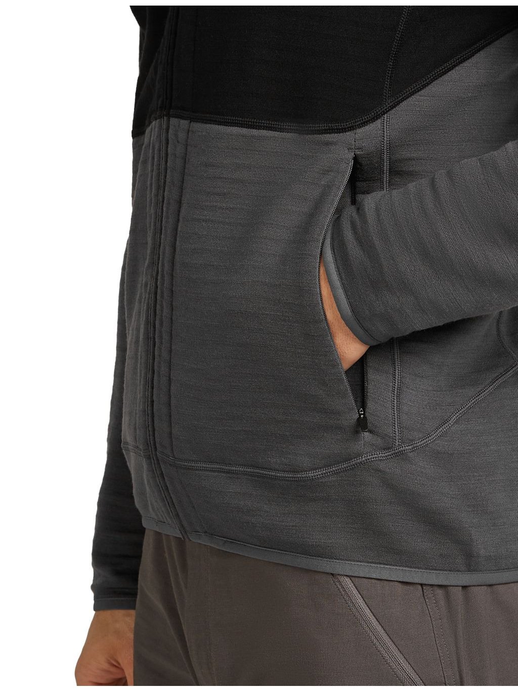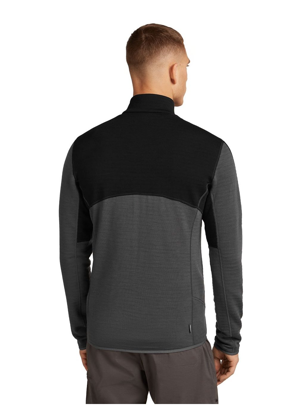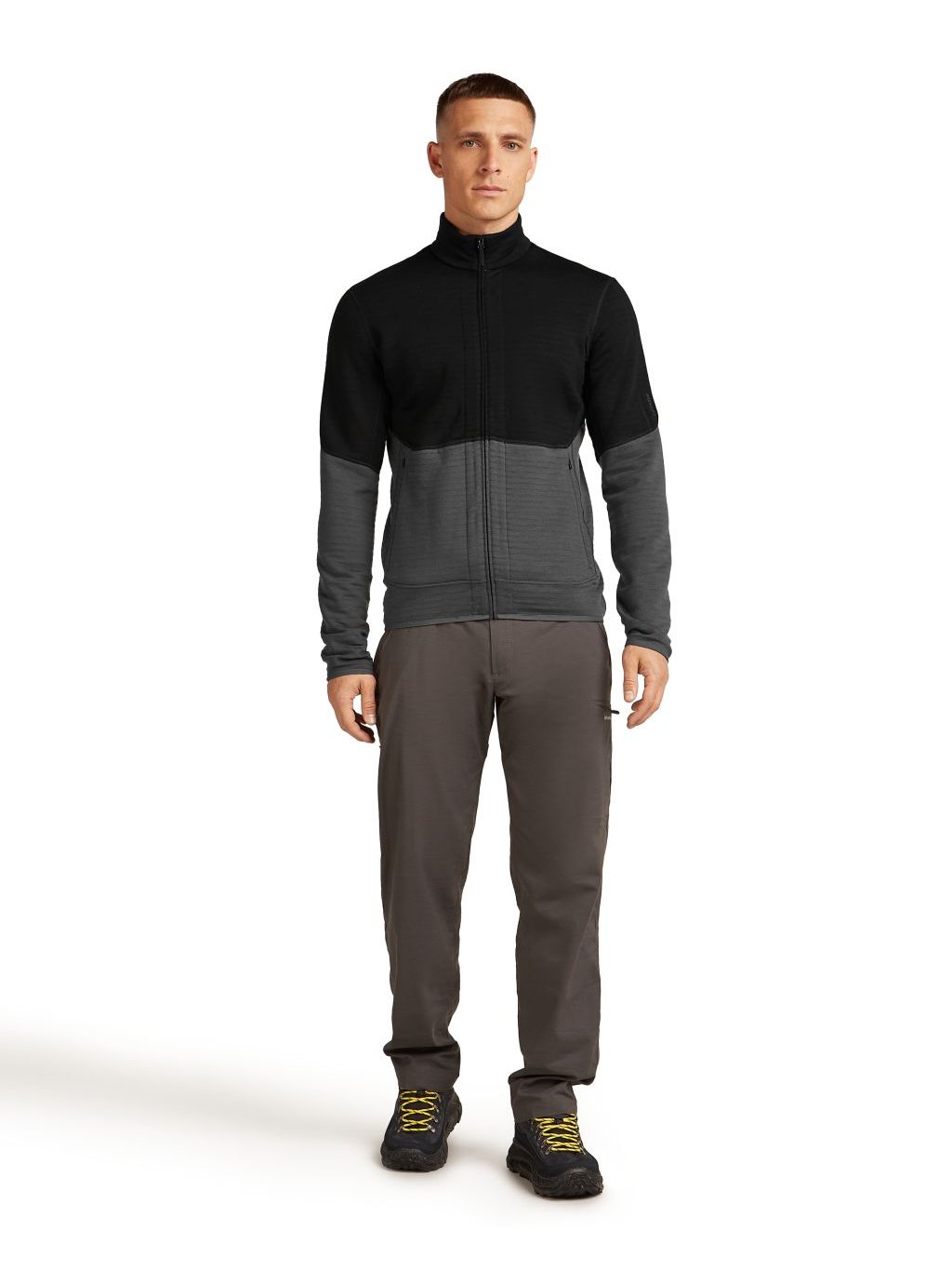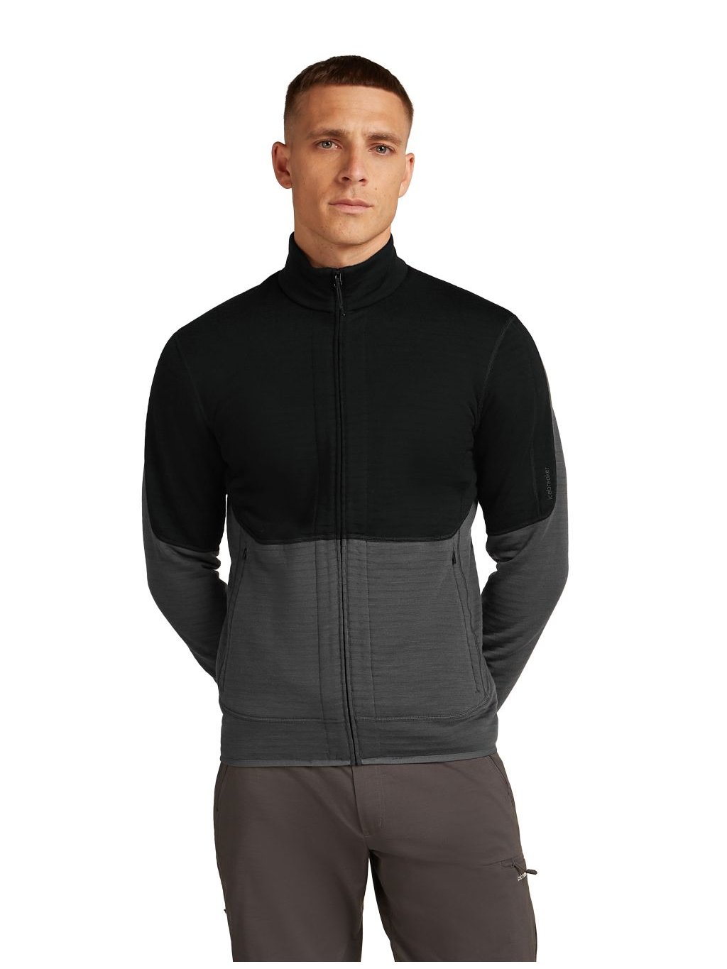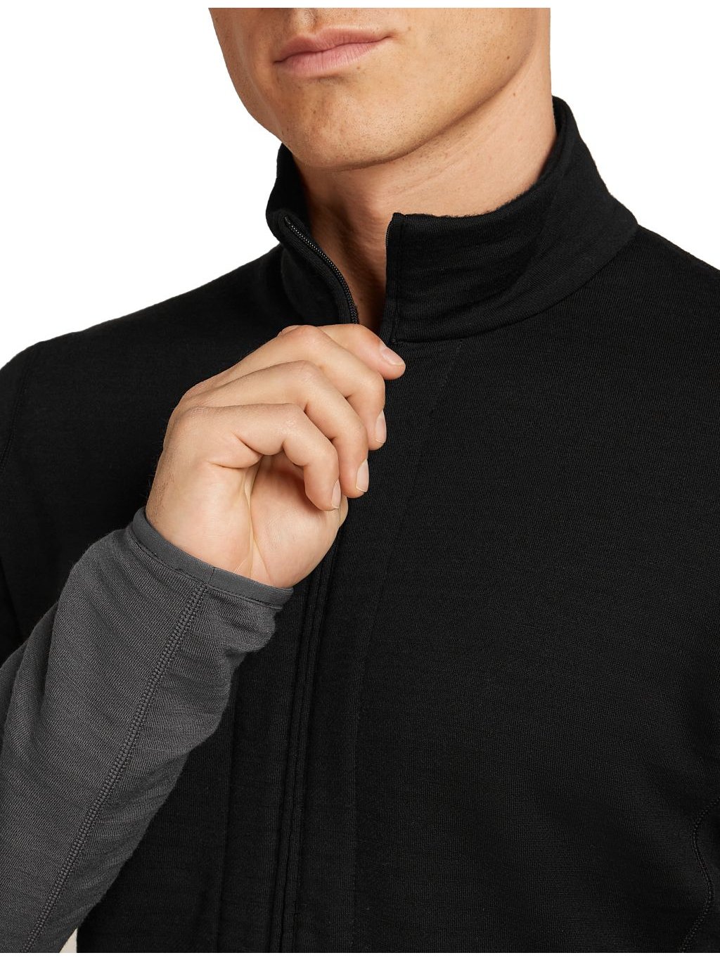 Pánská merino mikina ICEBREAKER Mens 400 RealFleece Descender LS Zip, Black/Obsidian/Cb