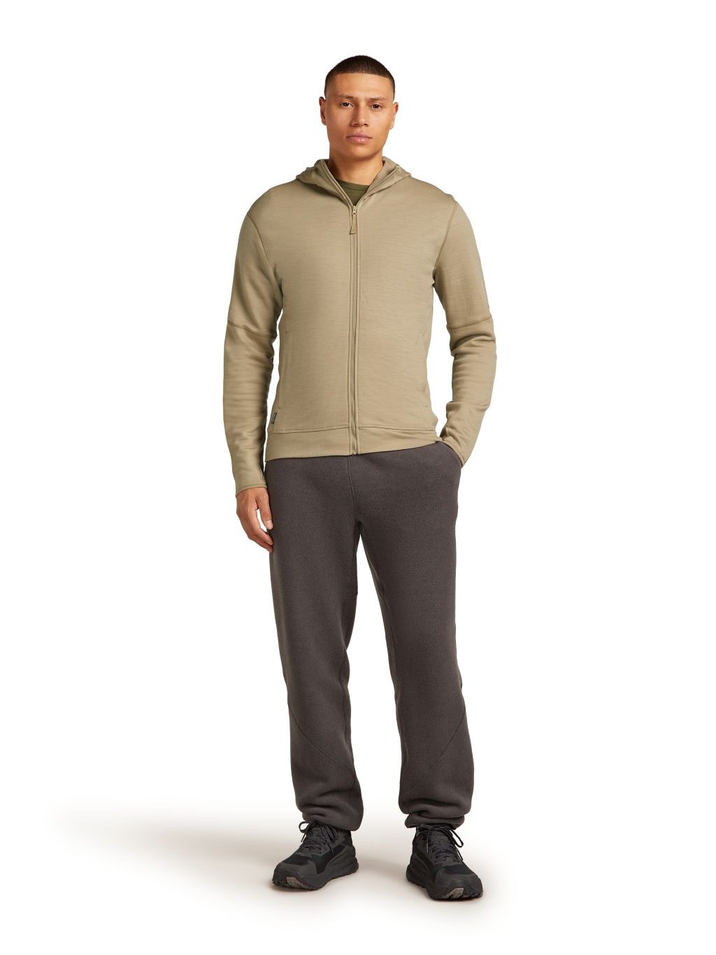 Pánská merino mikina s kapucí ICEBREAKER Mens 360 Realfleece Elemental LS Zip Hood, Flagstone