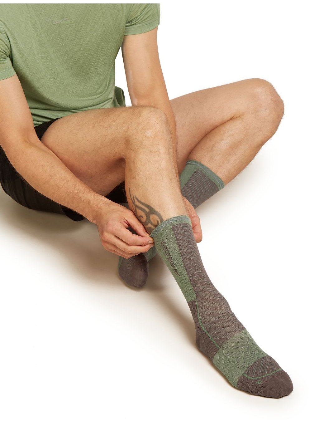 Pánské merino ponožky ICEBREAKER Mens Mer Run+ Ultralight Crew, Porcini/Lichen