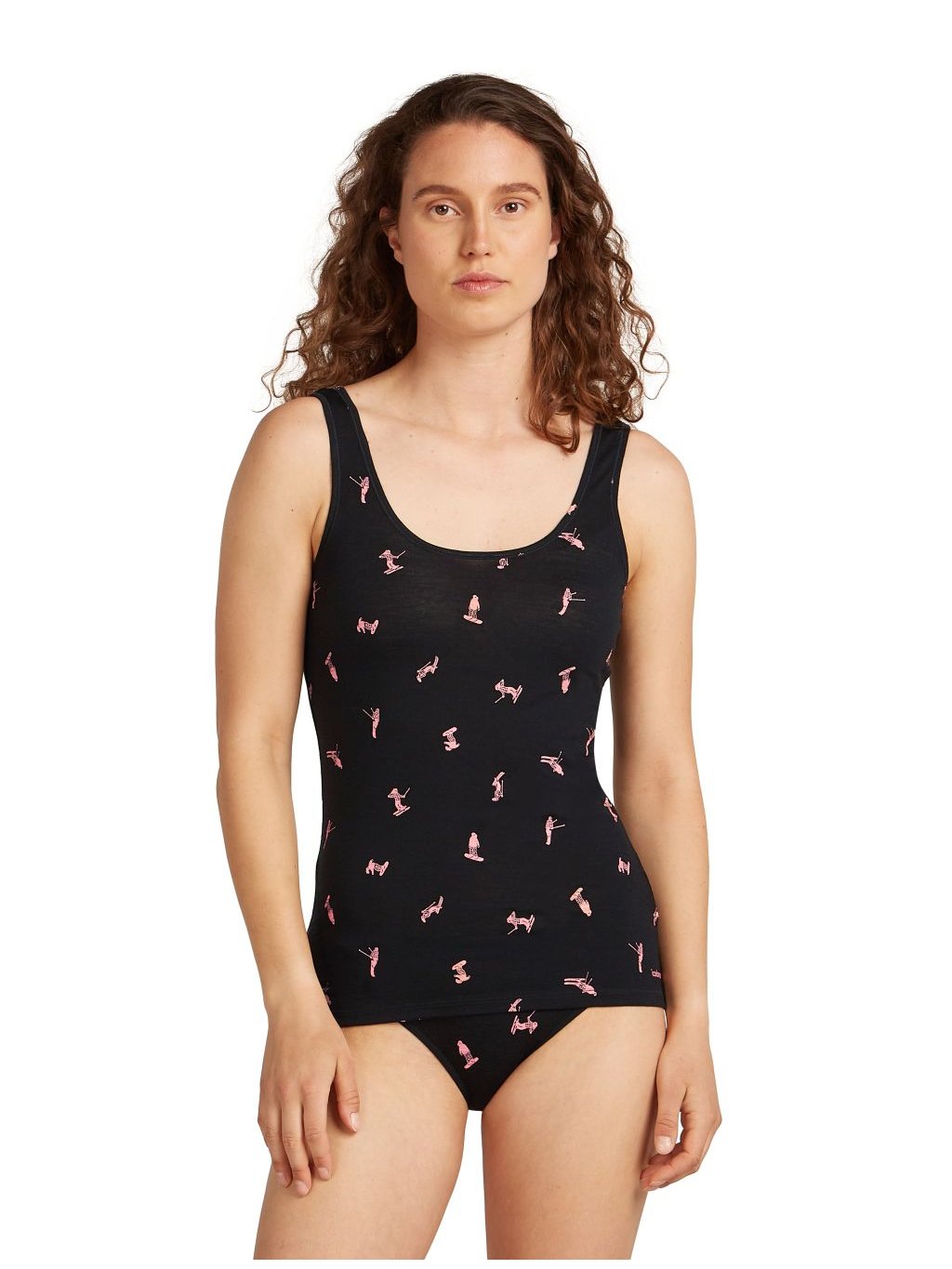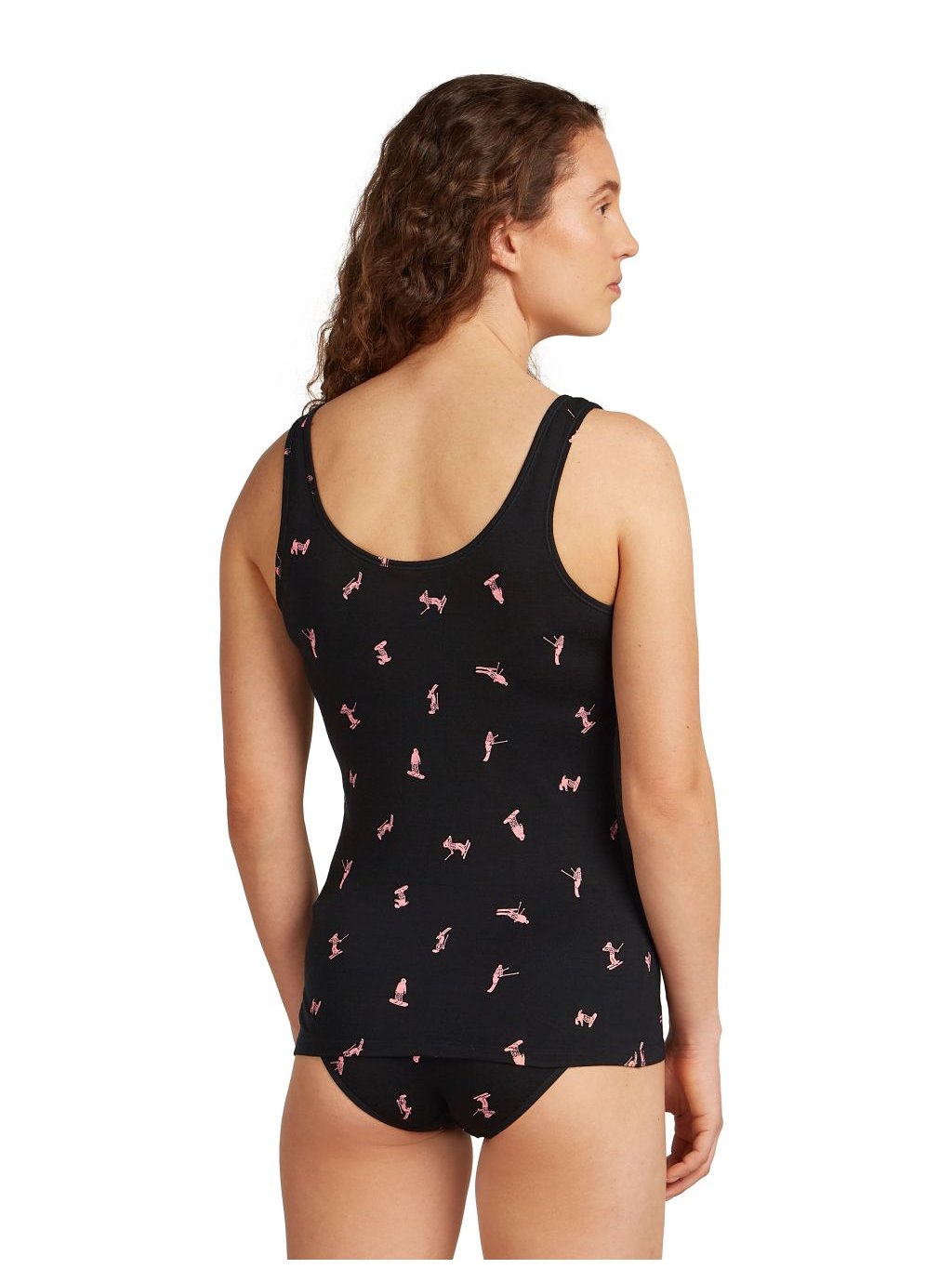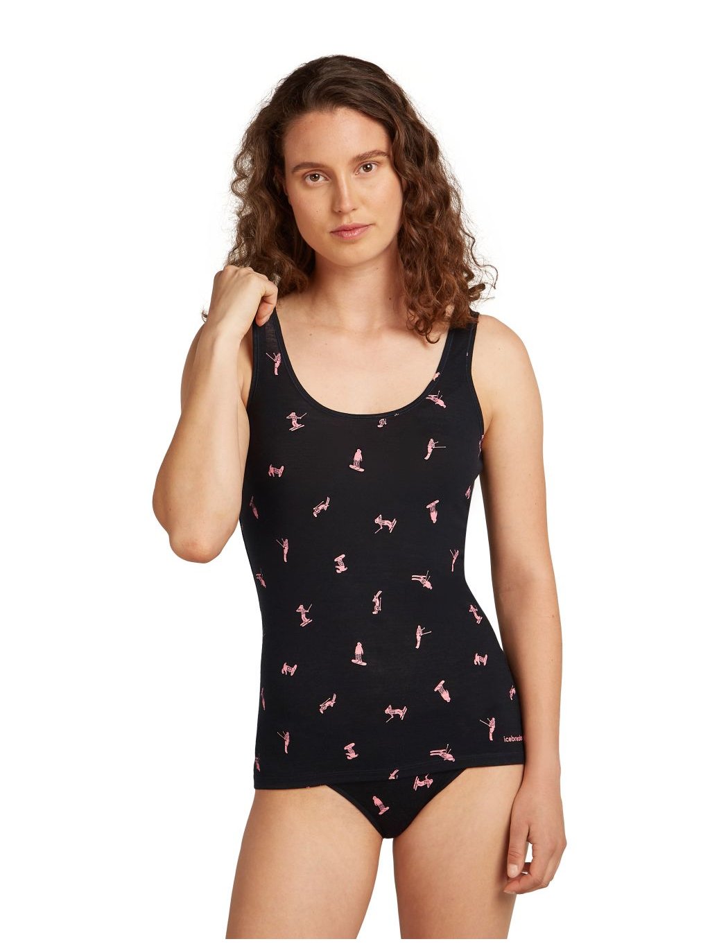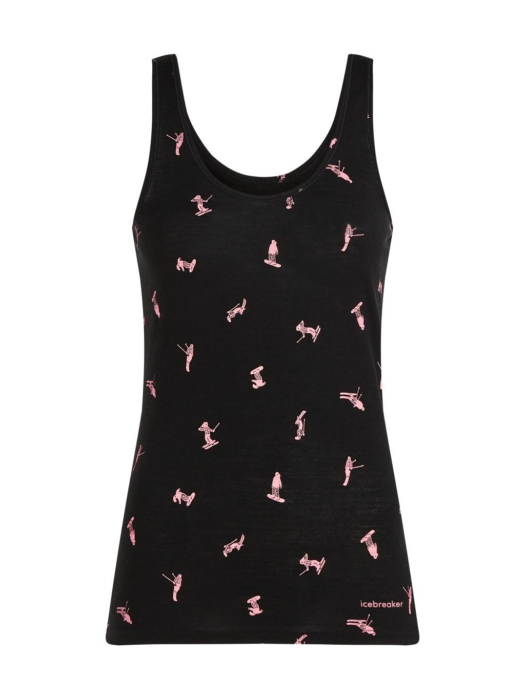 Dámské merino tílko ICEBREAKER Wmns 150 Siren Tank Ski Day, Black/Acid Pink/Aop