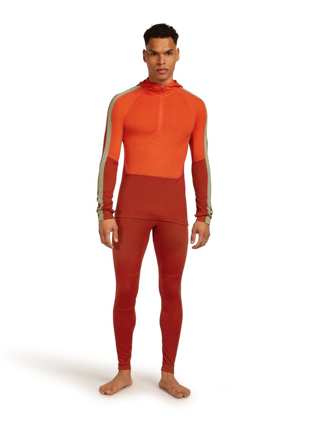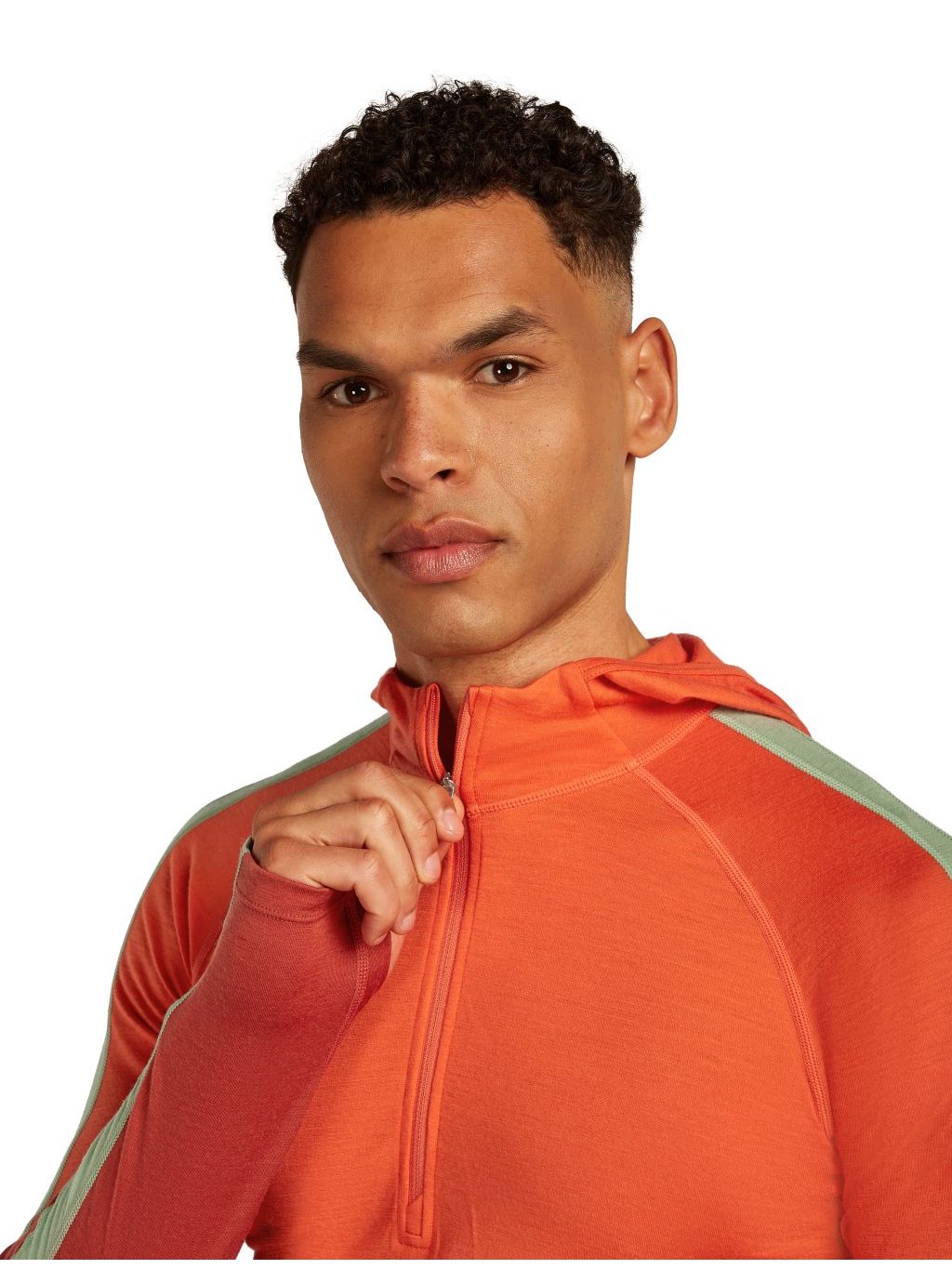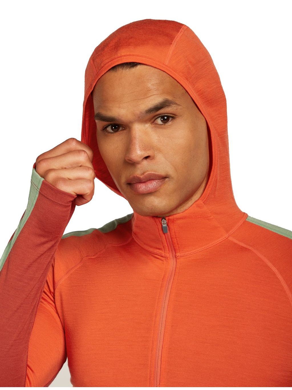 Pánské merino tričko s dlouhým rukávem ICEBREAKER Mens 200 Oasis+ LS Half Zip Hood, Agate/Fervid/Seaglass/Cb