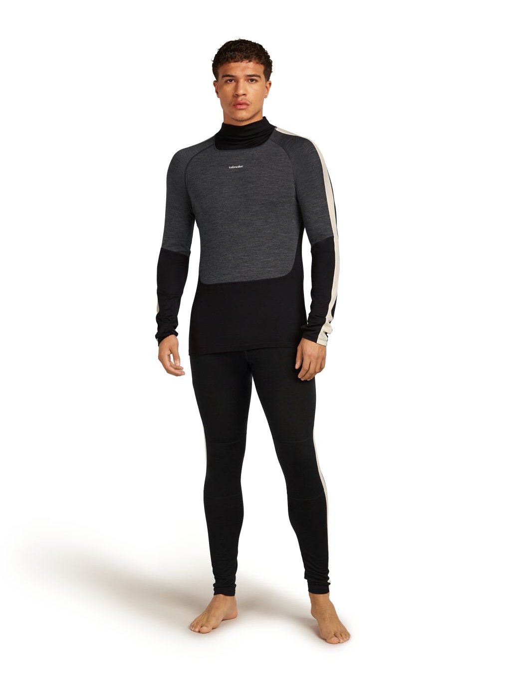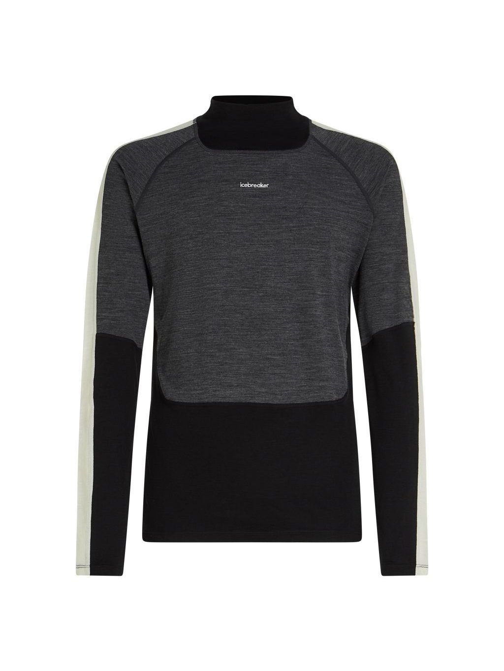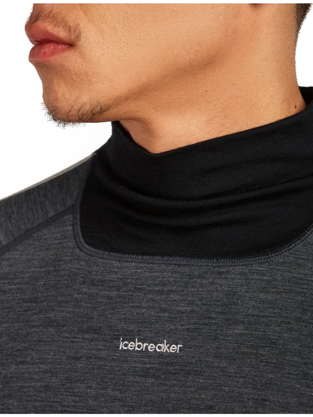 Pánské merino tričko s dlouhým rukávem ICEBREAKER Mens 200 Oasis+ LS High Neck, Black/Jet Heather/Undyed/Cb