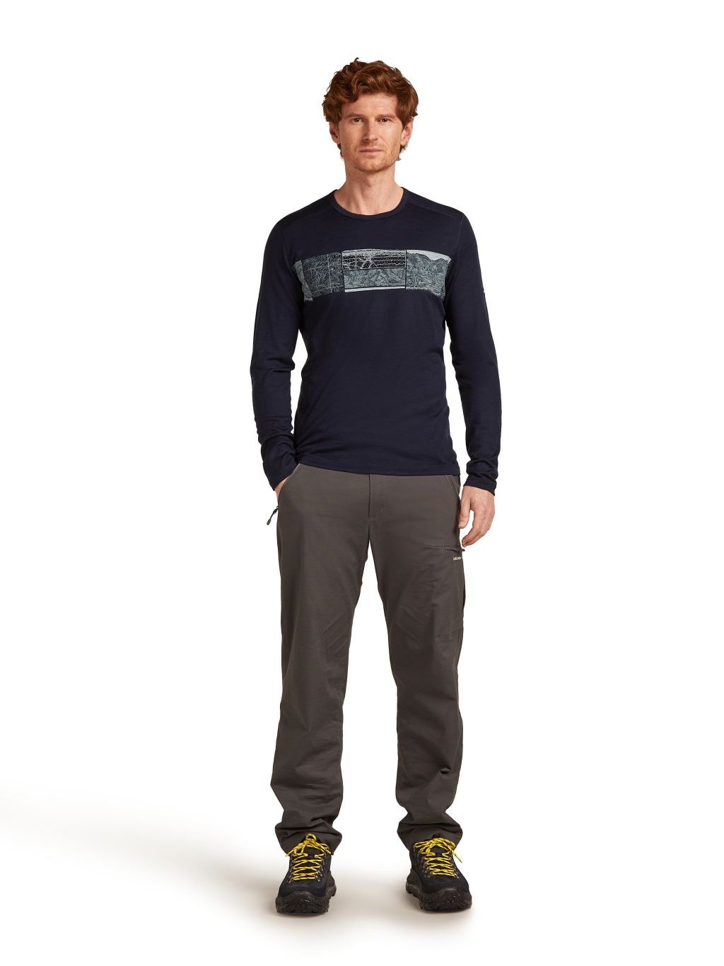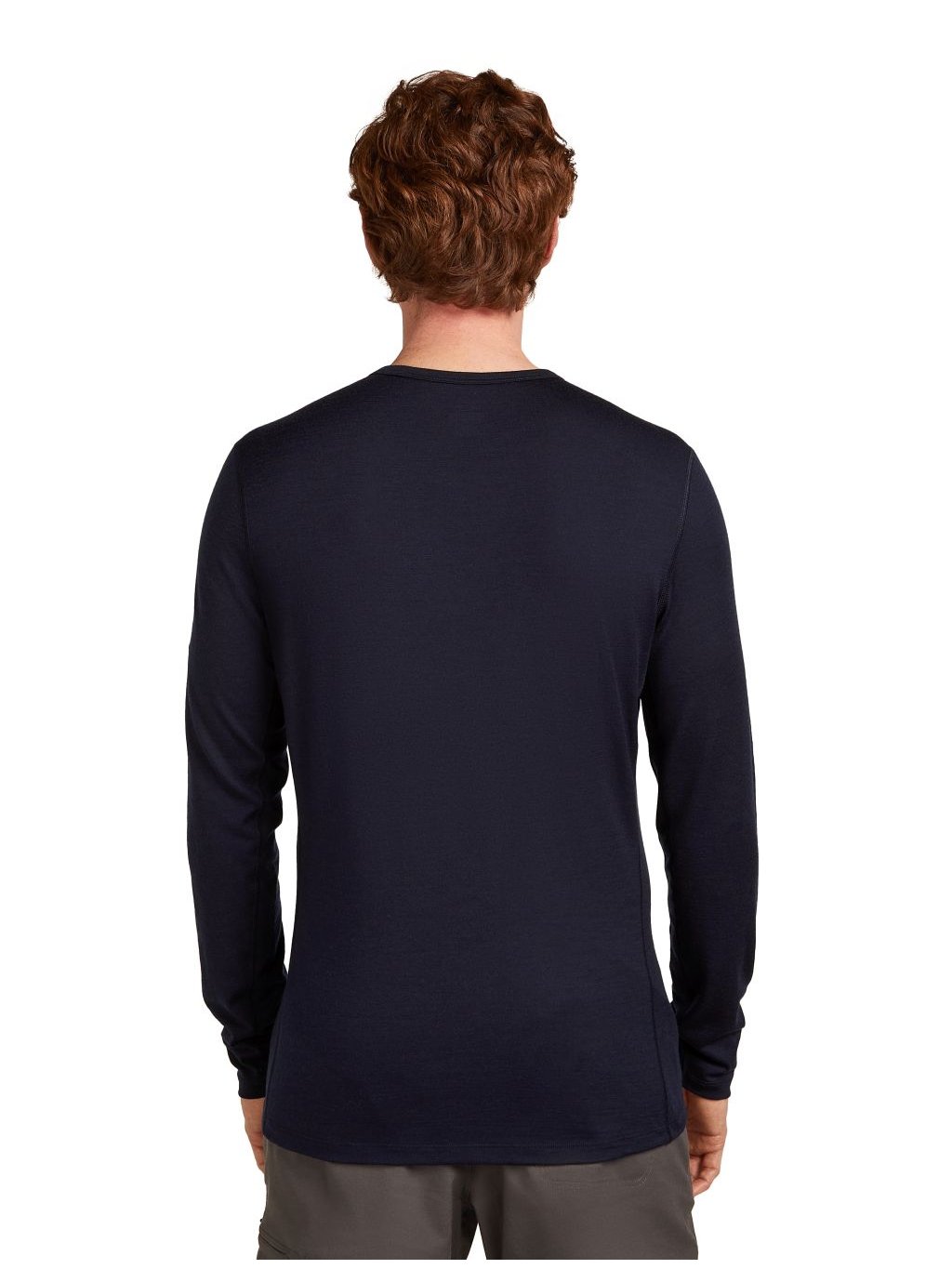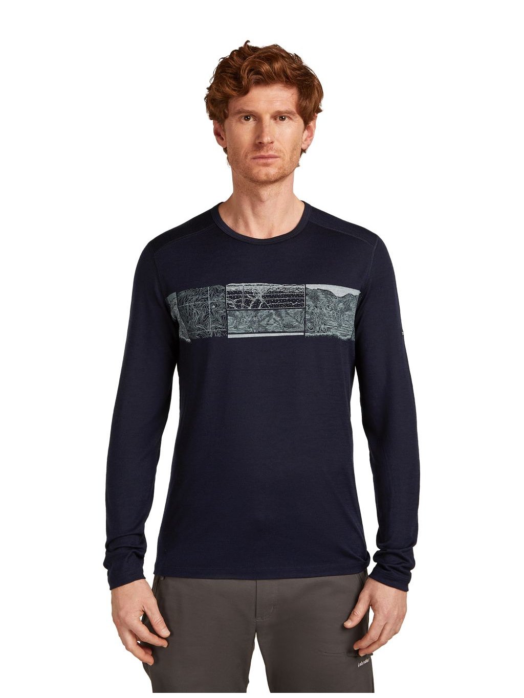 Pánské merino tričko s dlouhým rukávem ICEBREAKER Mens 200 Oasis LS Crewe Elevation Lin, Midnight Navy