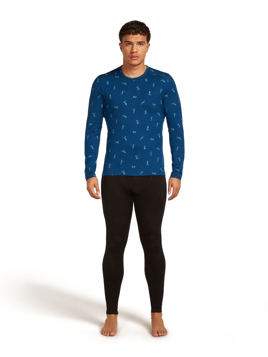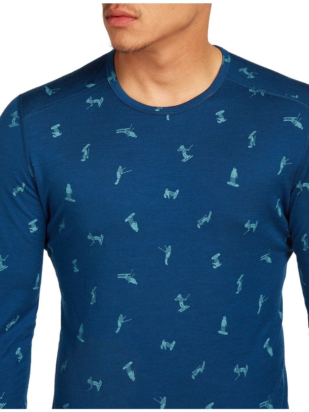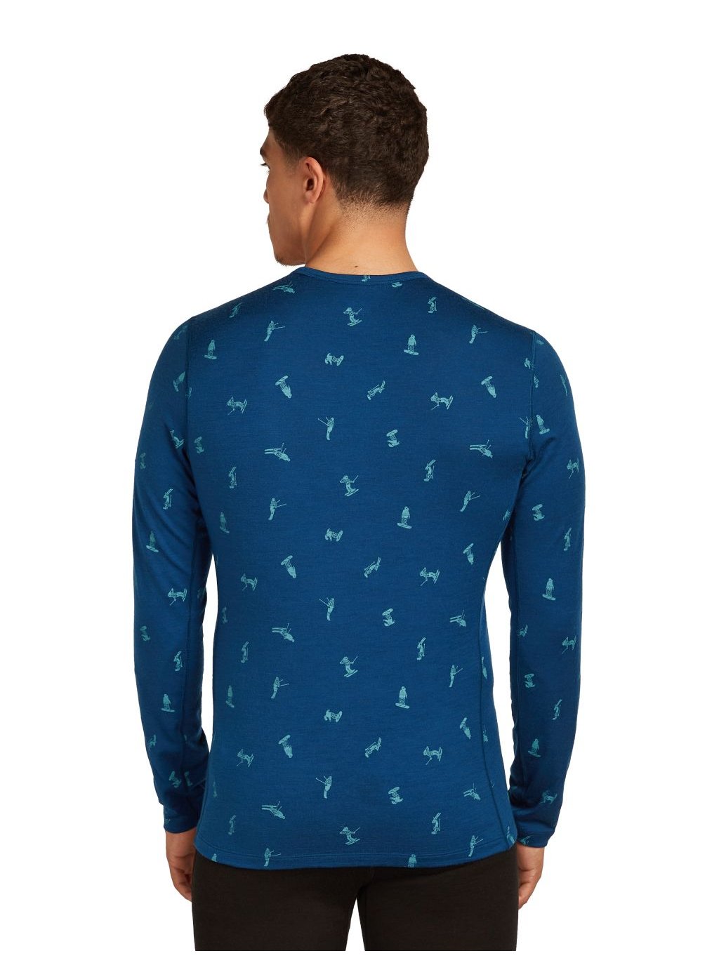 Pánské merino tričko s dlouhým rukávem ICEBREAKER Mens 200 Oasis LS Crewe Snow Day AOP, Atlantis/Topaz/Aop