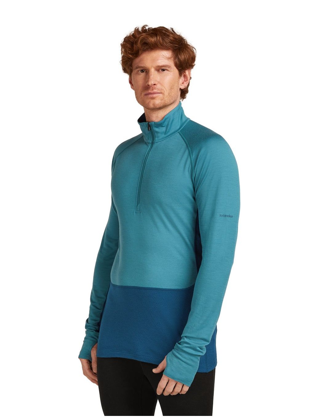 Pánské merino tričko s dlouhým rukávem ICEBREAKER Mens 200 ZoneKnit LS Half Zip, Atlantis/Topaz/Cb