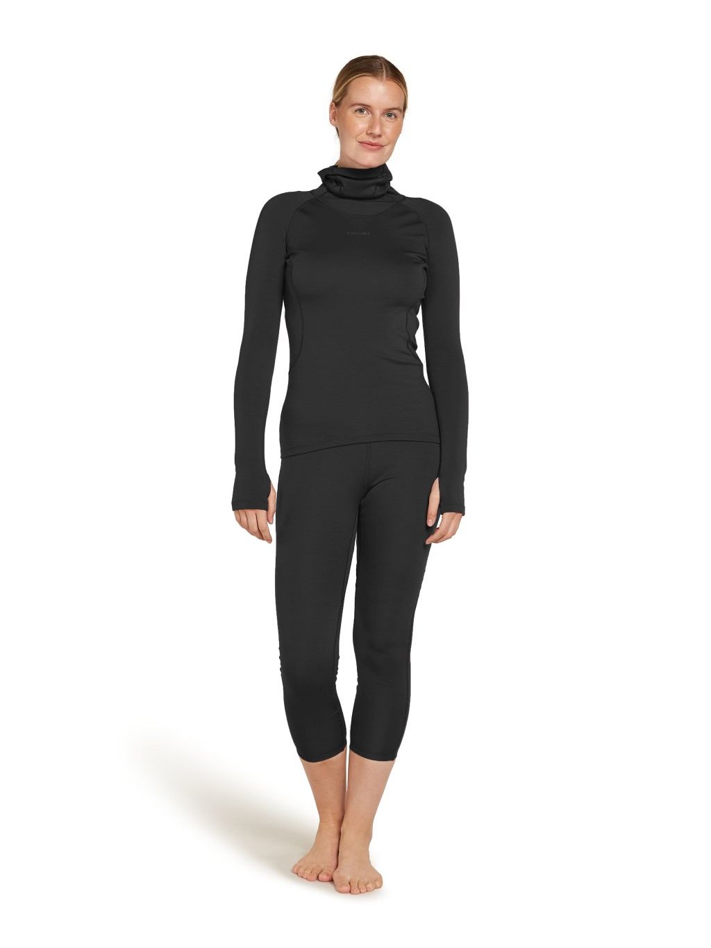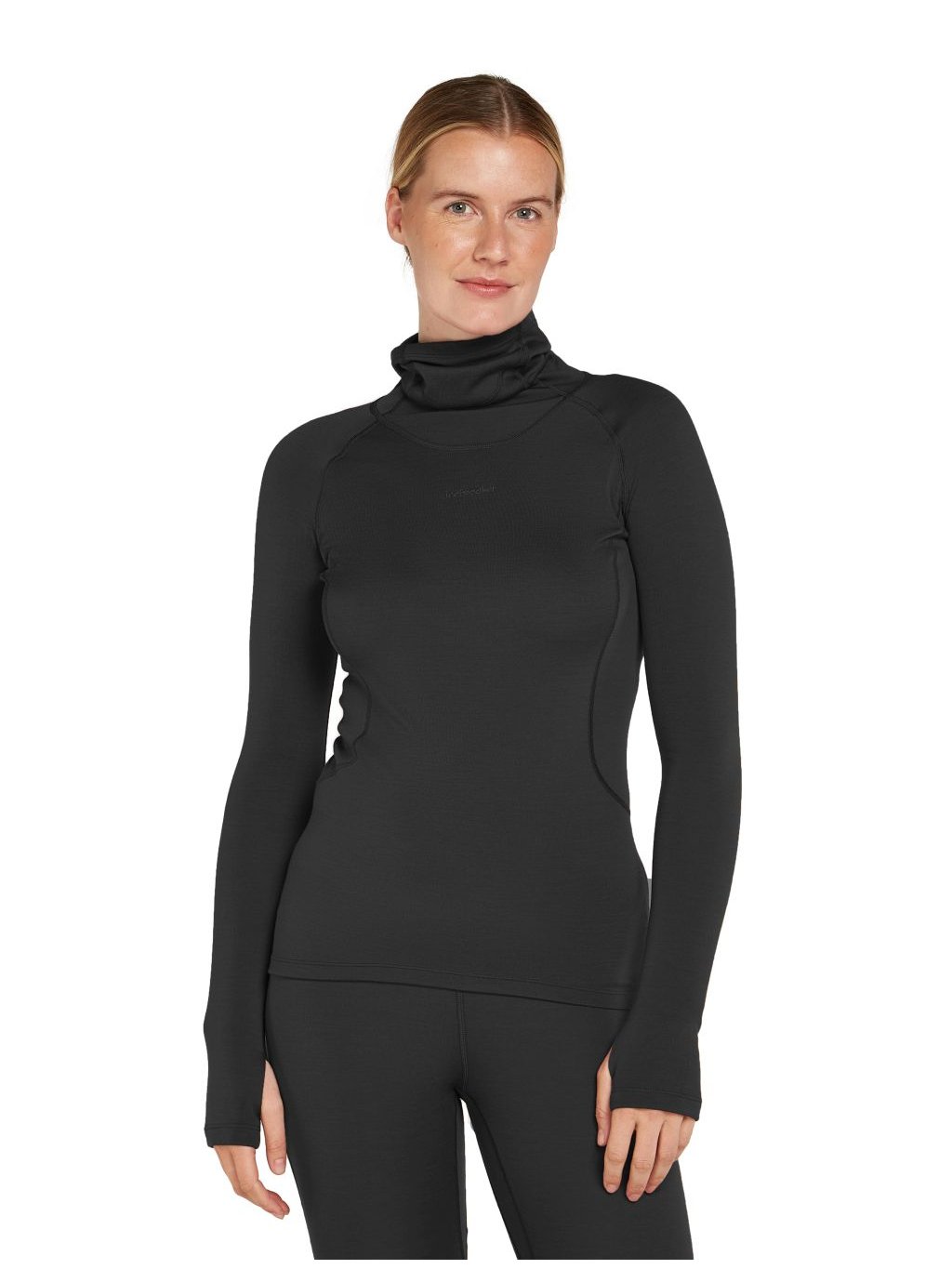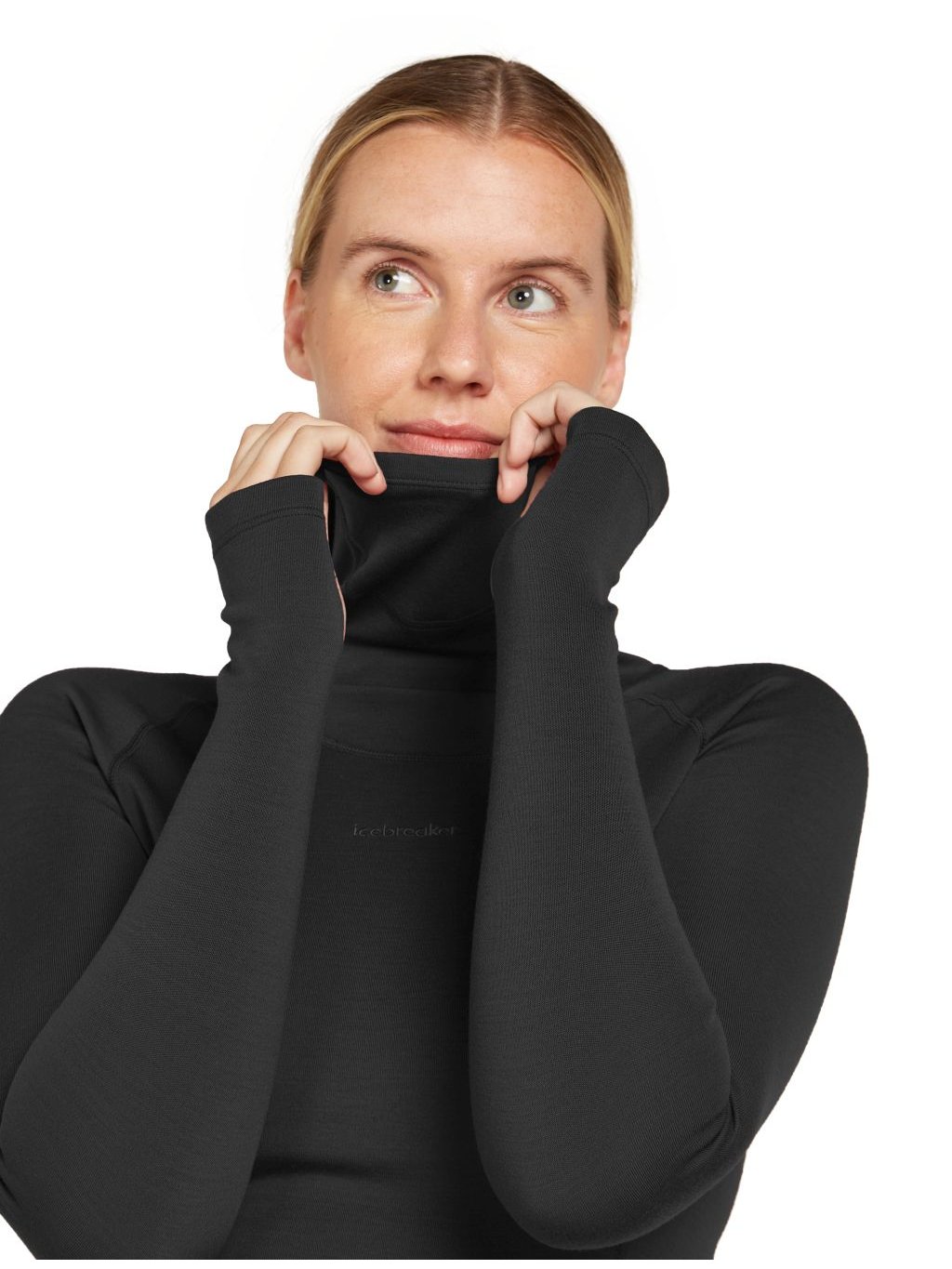 Dámské merino tričko s dlouhým rukávem ICEBREAKER Wmns 300 MerinoFine Polar LS Roll Neck, Black