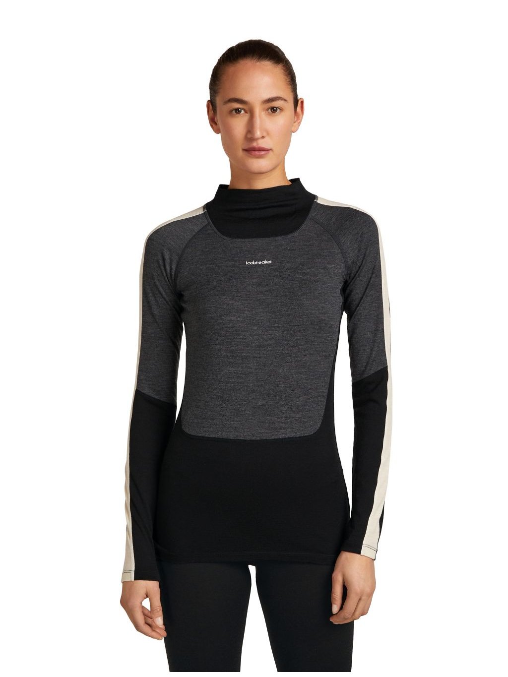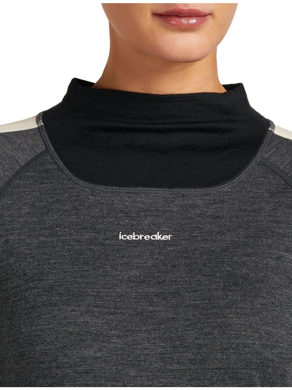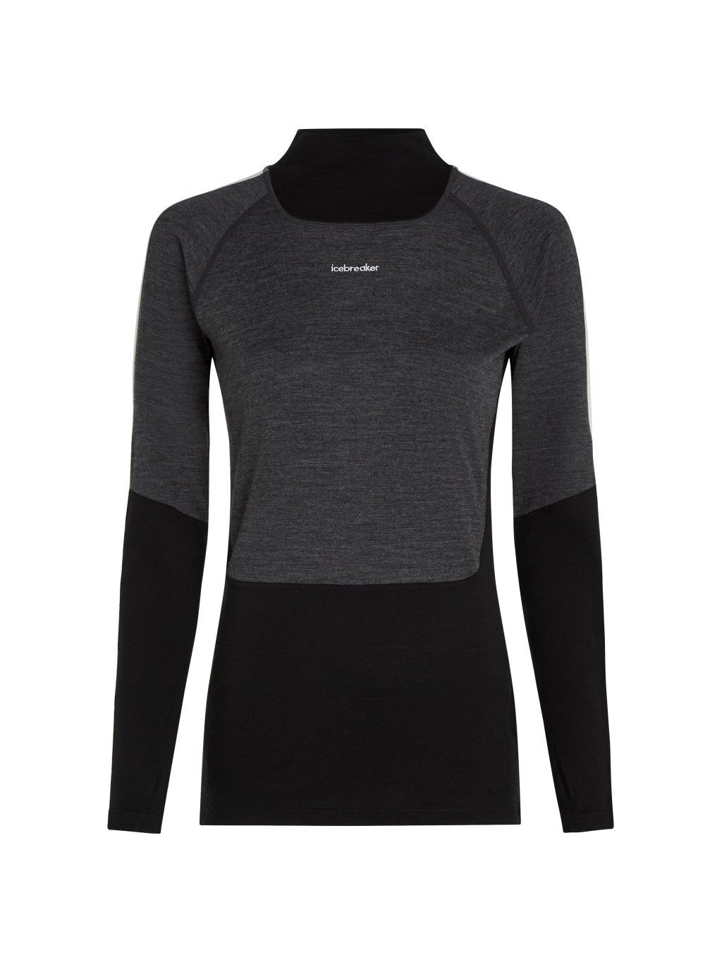 Dámské merino tričko s dlouhým rukávem ICEBREAKER Wmns 200 Oasis+ LS High Neck, Black/Jet Heather/Undyed/Cb