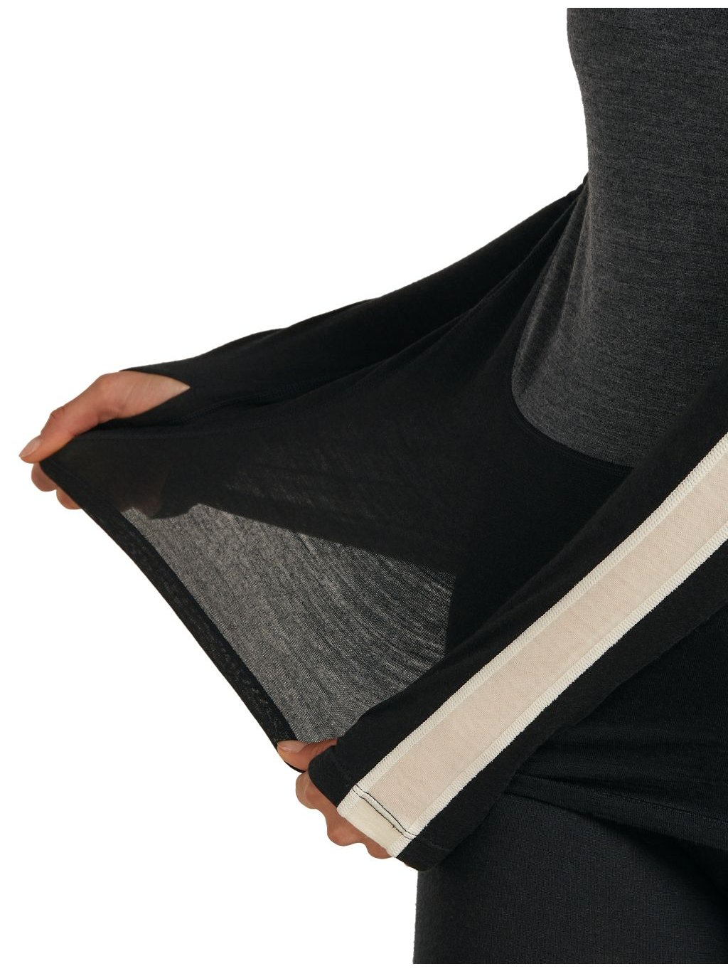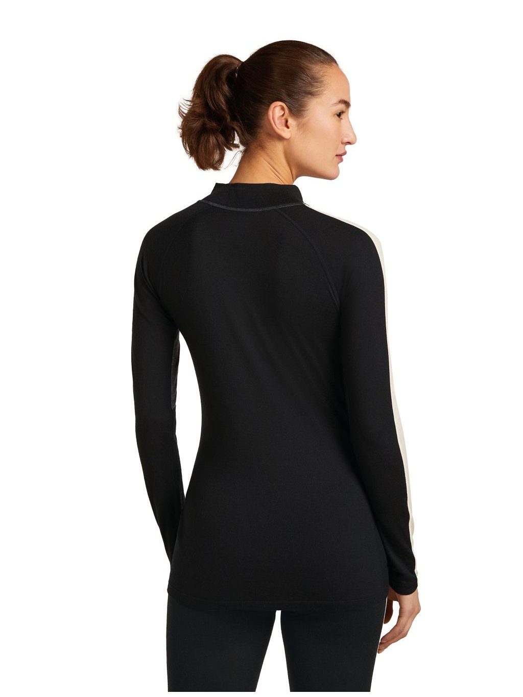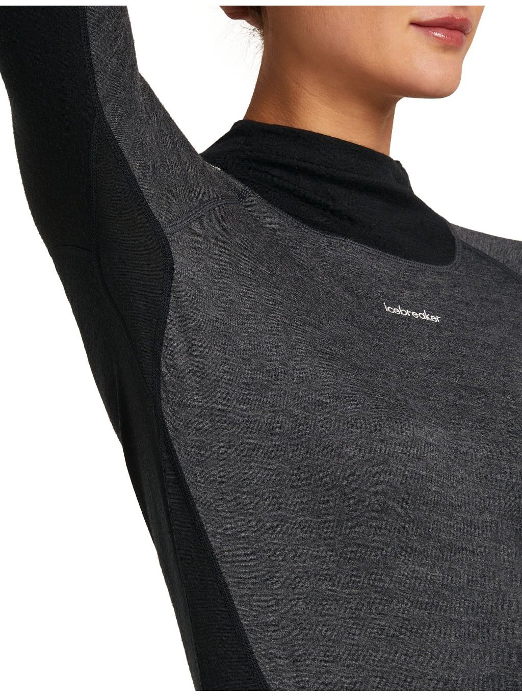 Dámské merino tričko s dlouhým rukávem ICEBREAKER Wmns 200 Oasis+ LS High Neck, Black/Jet Heather/Undyed/Cb