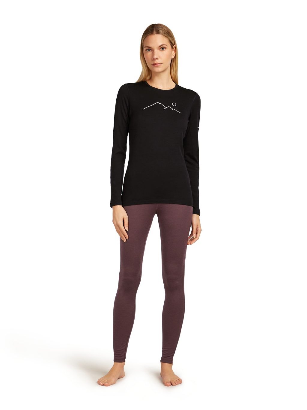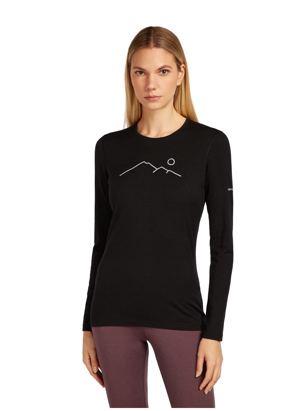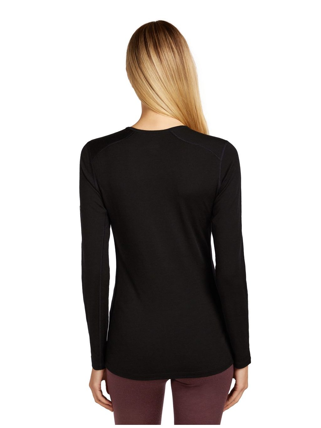 Dámské merino tričko s dlouhým rukávem ICEBREAKER Wmns 200 Oasis LS Crewe Rainer Ridg, Black