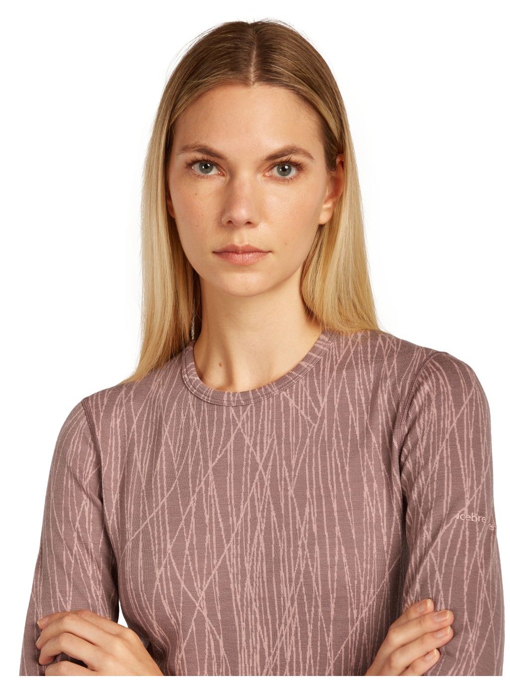 Dámské merino tričko s dlouhým rukávem ICEBREAKER Wmns 260 Vertex LS Crewe Delta AOP, Summit/Blush/J