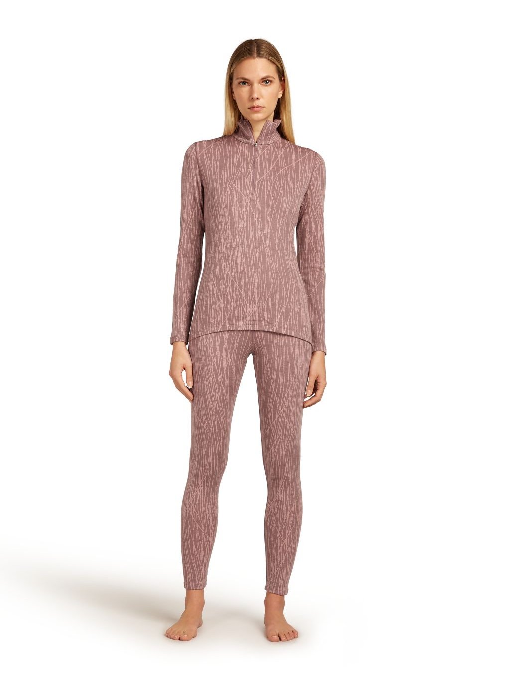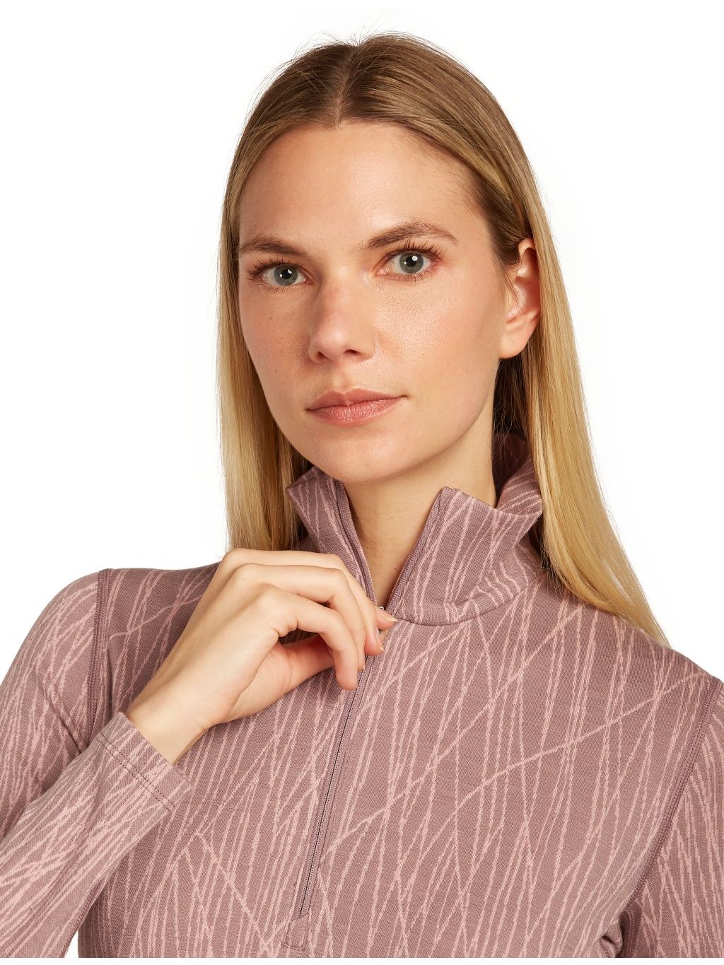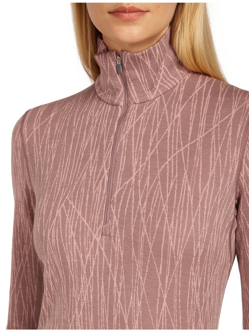 Dámské merino tričko s dlouhým rukávem ICEBREAKER Wmns 260 Vertex LS Half Zip Delta AOP, Summit/Blush/J