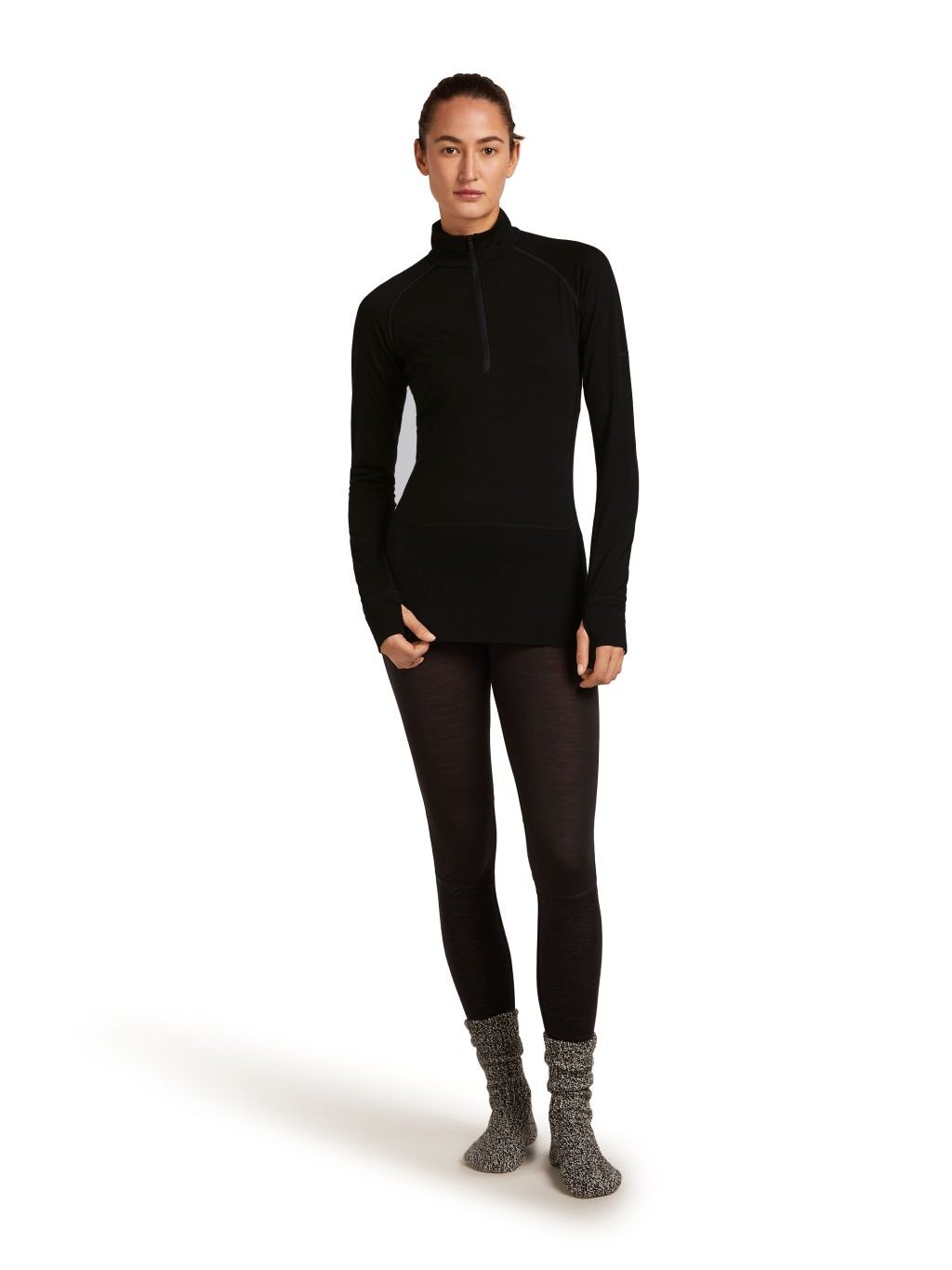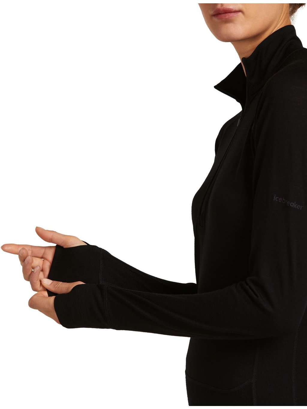 Dámské merino tričko s dlouhým rukávem ICEBREAKER Women 200 ZoneKnit LS Half Zip, Black
