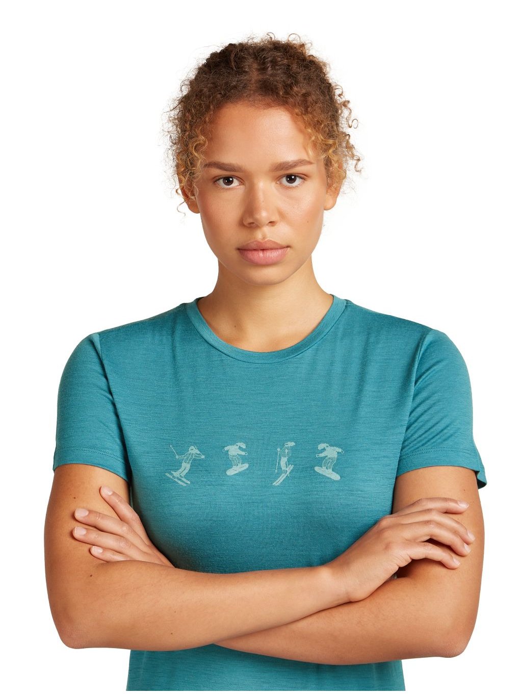 Dámské merino tričko s krátkým rukávem ICEBREAKER Wmns 150 Tech Lite SS Tee Snow Day, Topaz