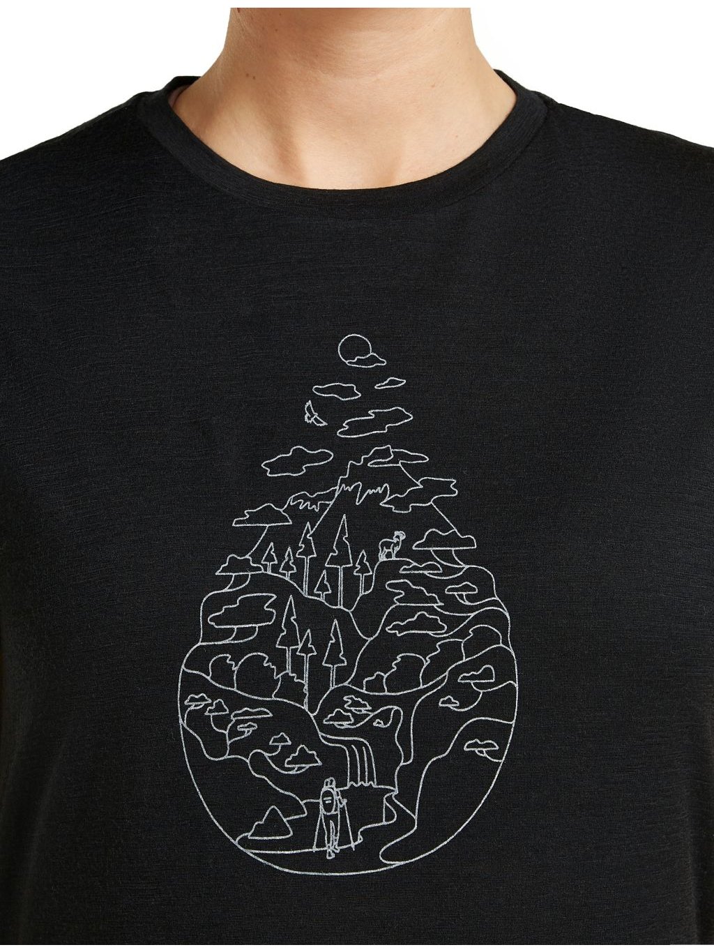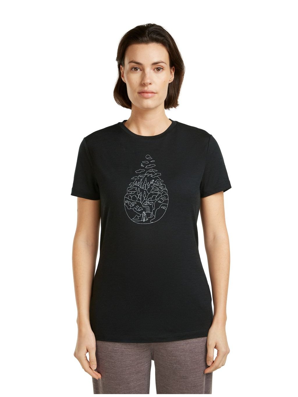 Dámské merino triko s krátkým rukávem ICEBREAKER Wmns Mer 150 Tech Lite III SS Tee Hike Path, Black