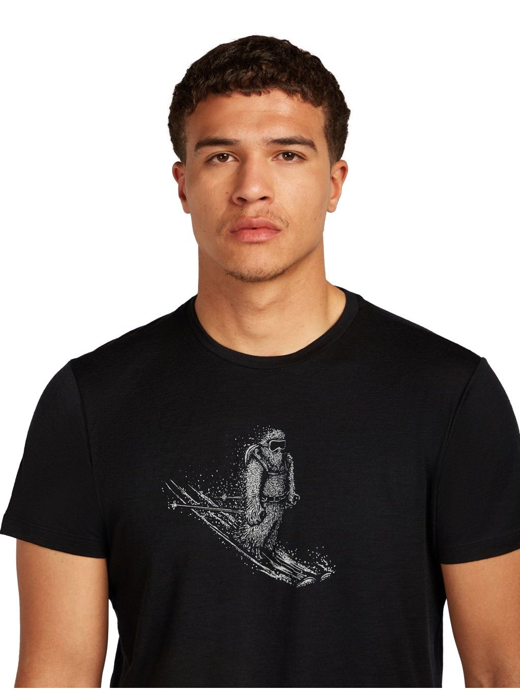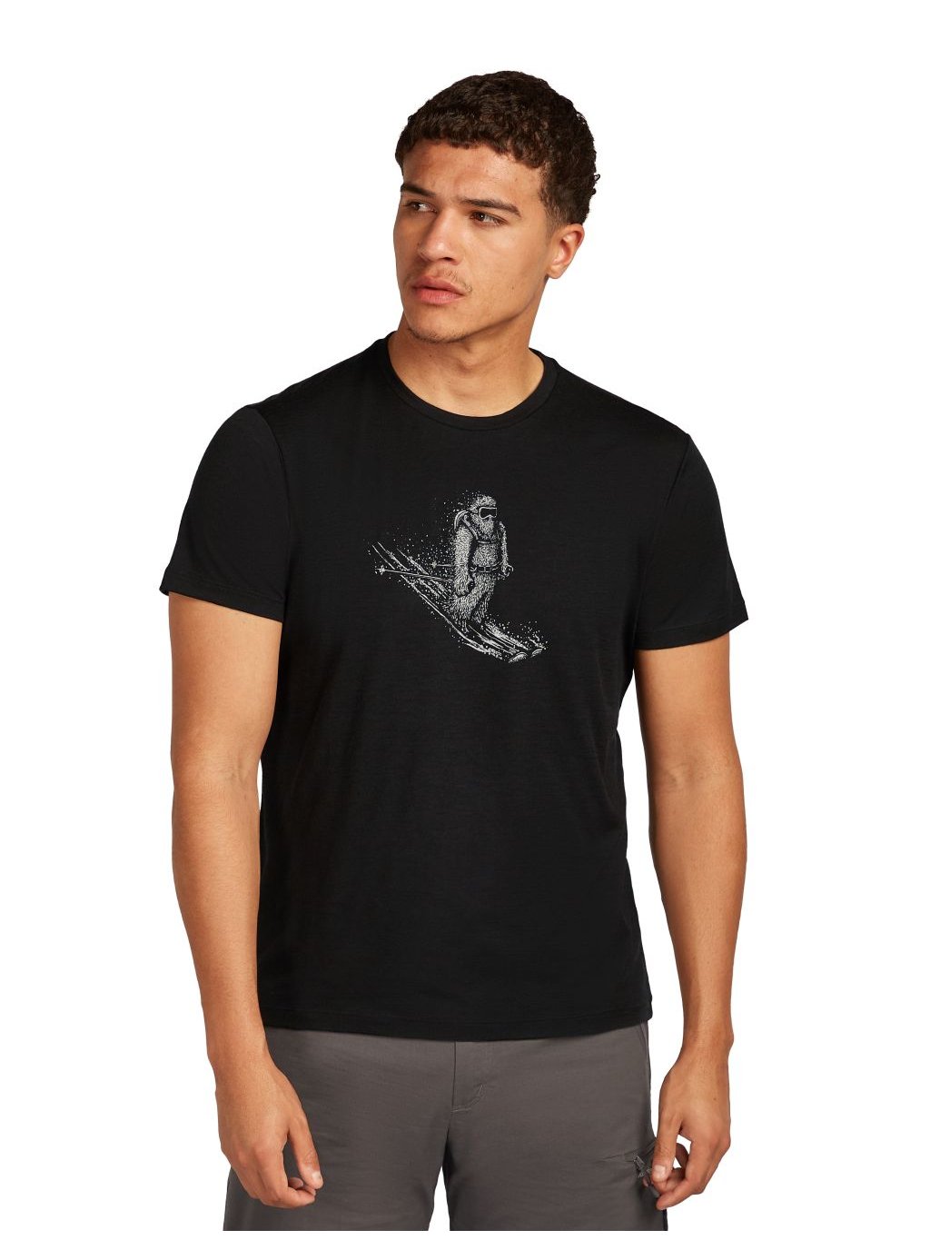 Pánské merino tričko s krátkým rukávem ICEBREAKER Mens 150 Tech Lite SS T Skiing Yeti, Black