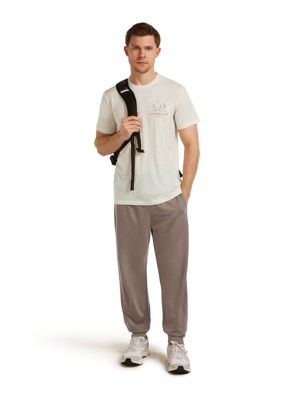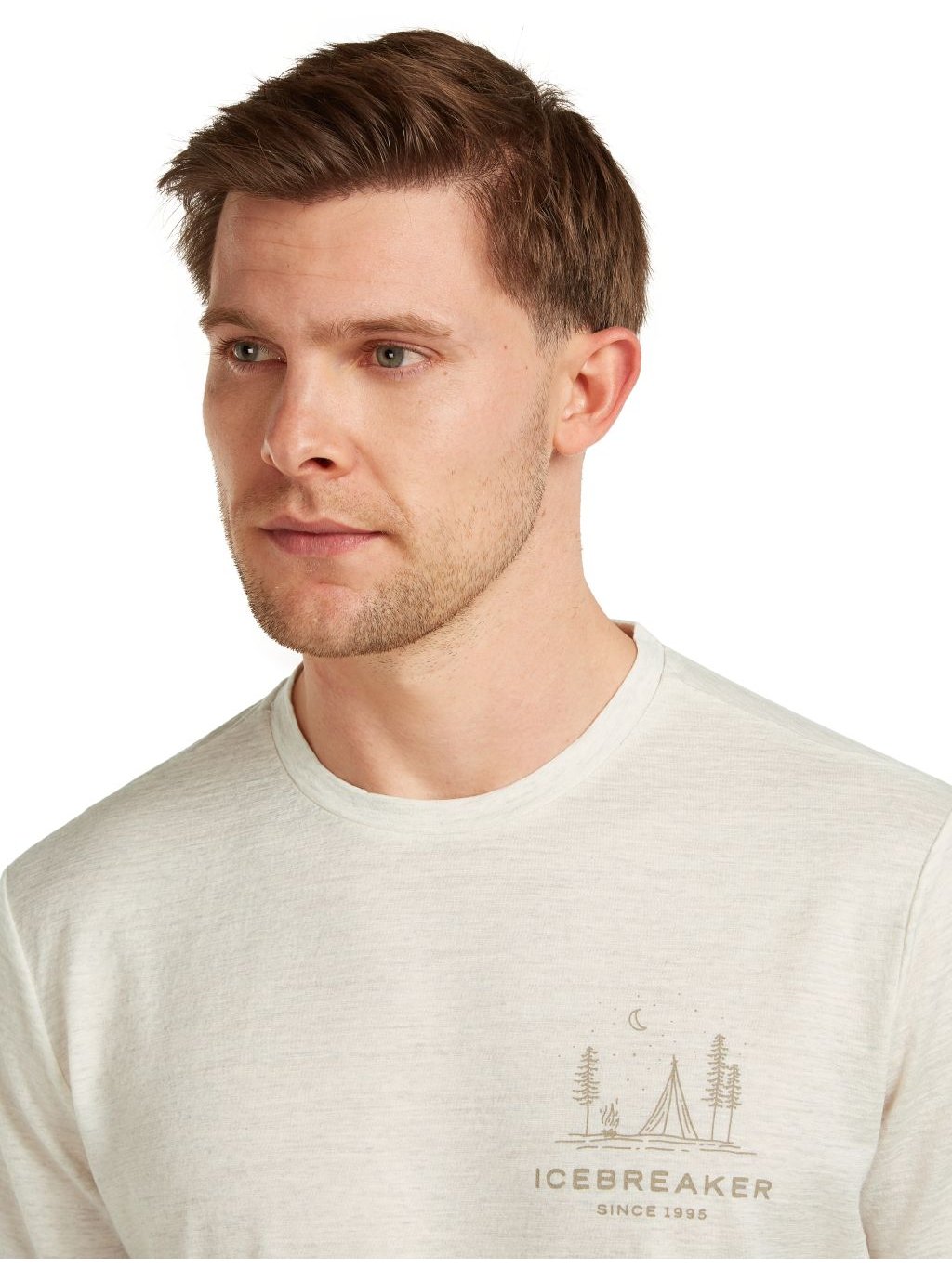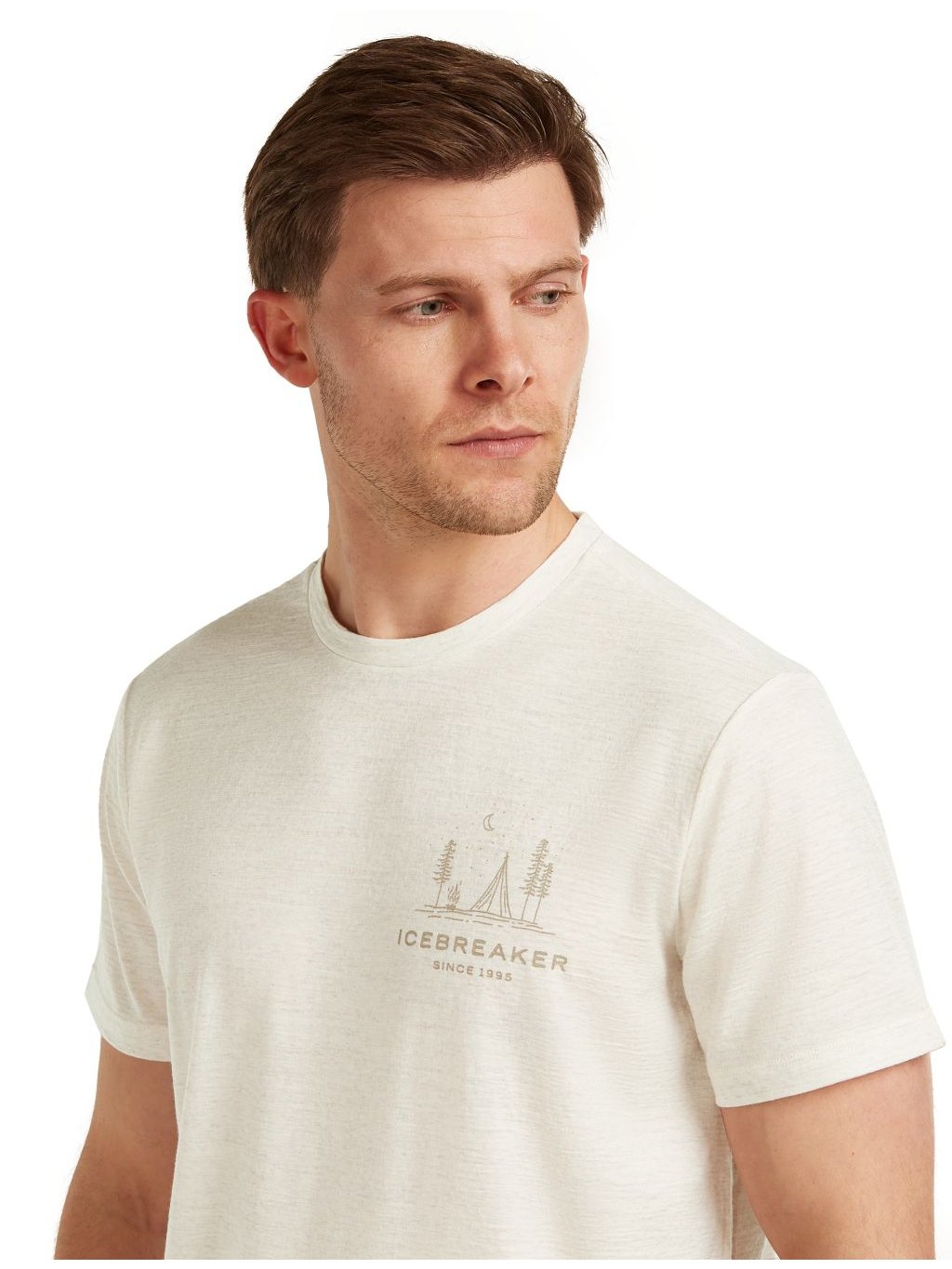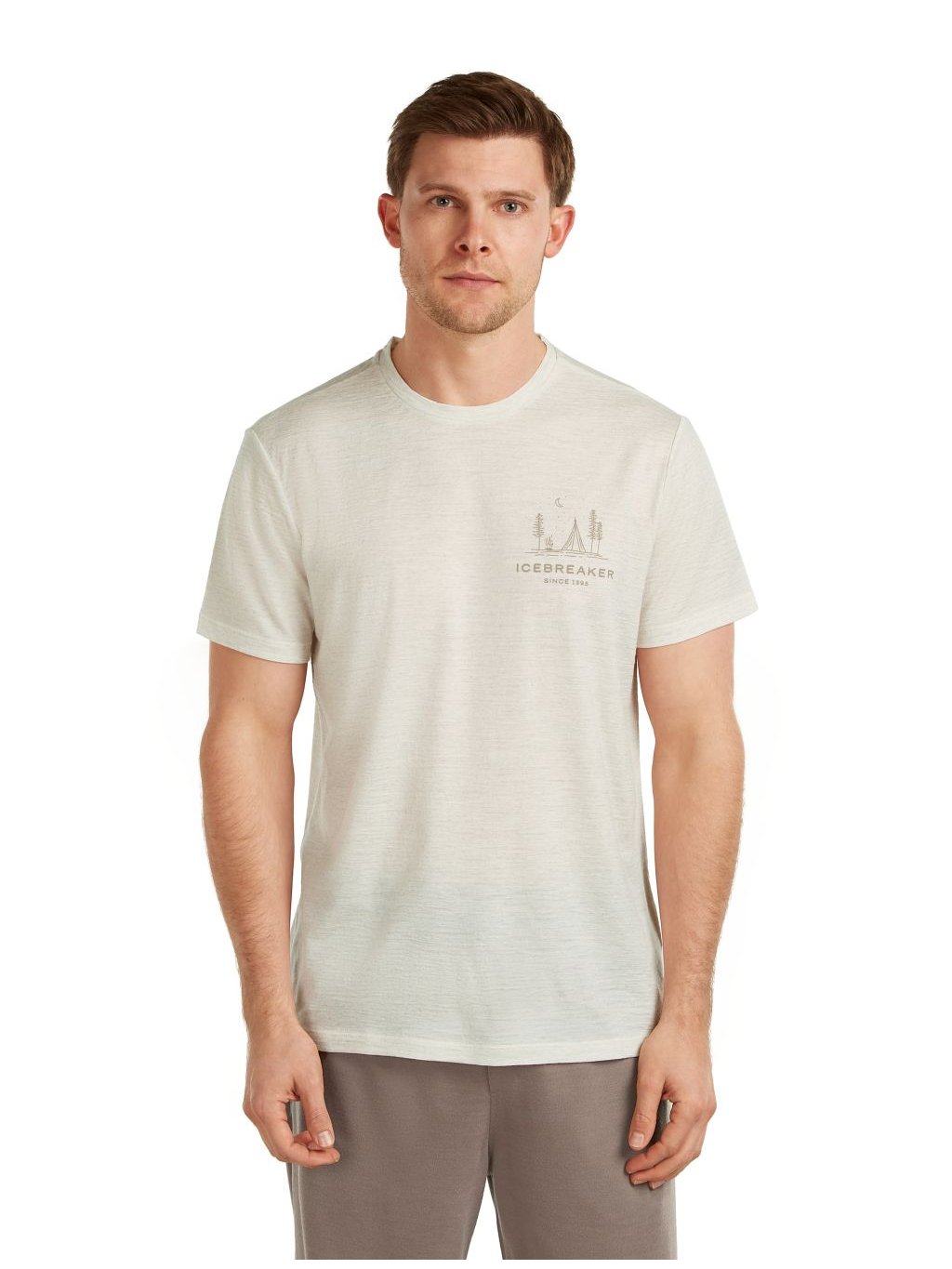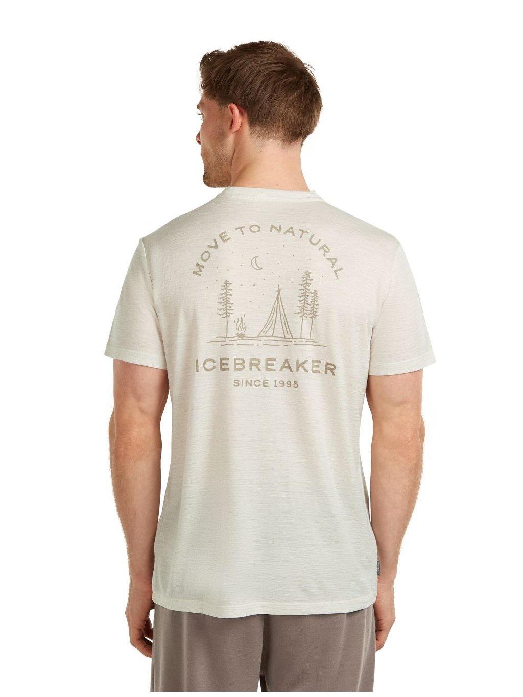 Pánské merino triko s krátkým rukávem ICEBREAKER Mens Mer 150 Tech Lite SS Tee Peaceful Pass, Ecru Hthr