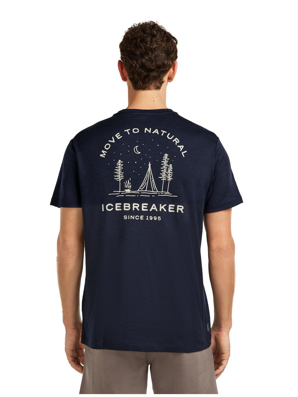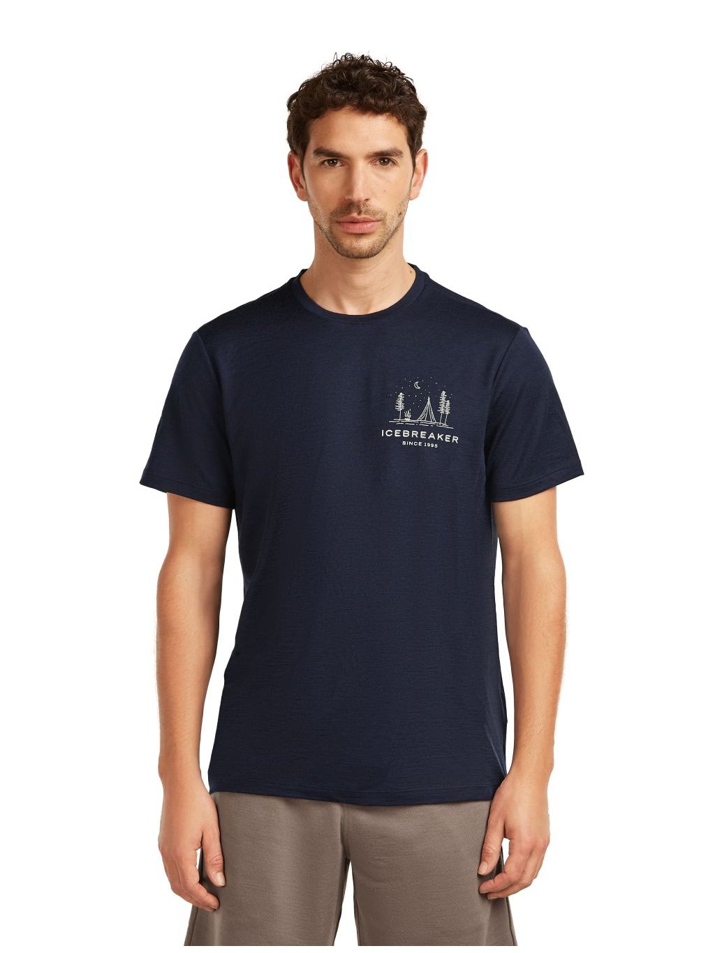 Pánské merino triko s krátkým rukávem ICEBREAKER Mens Mer 150 Tech Lite SS Tee Peaceful Pass, Midnight Navy