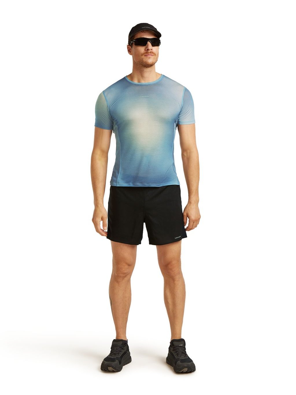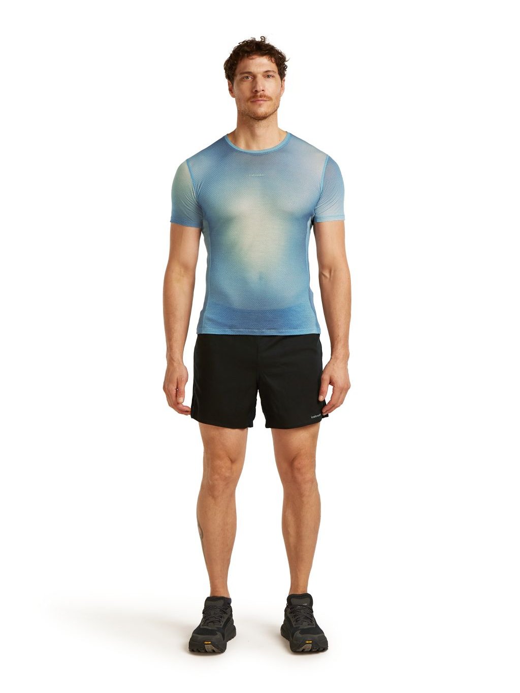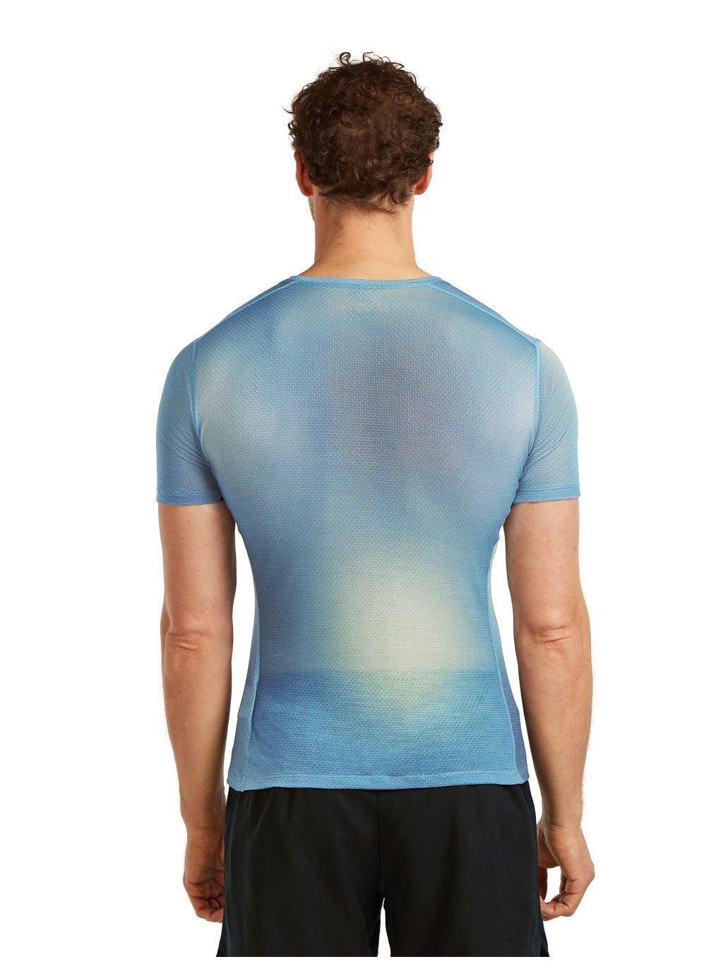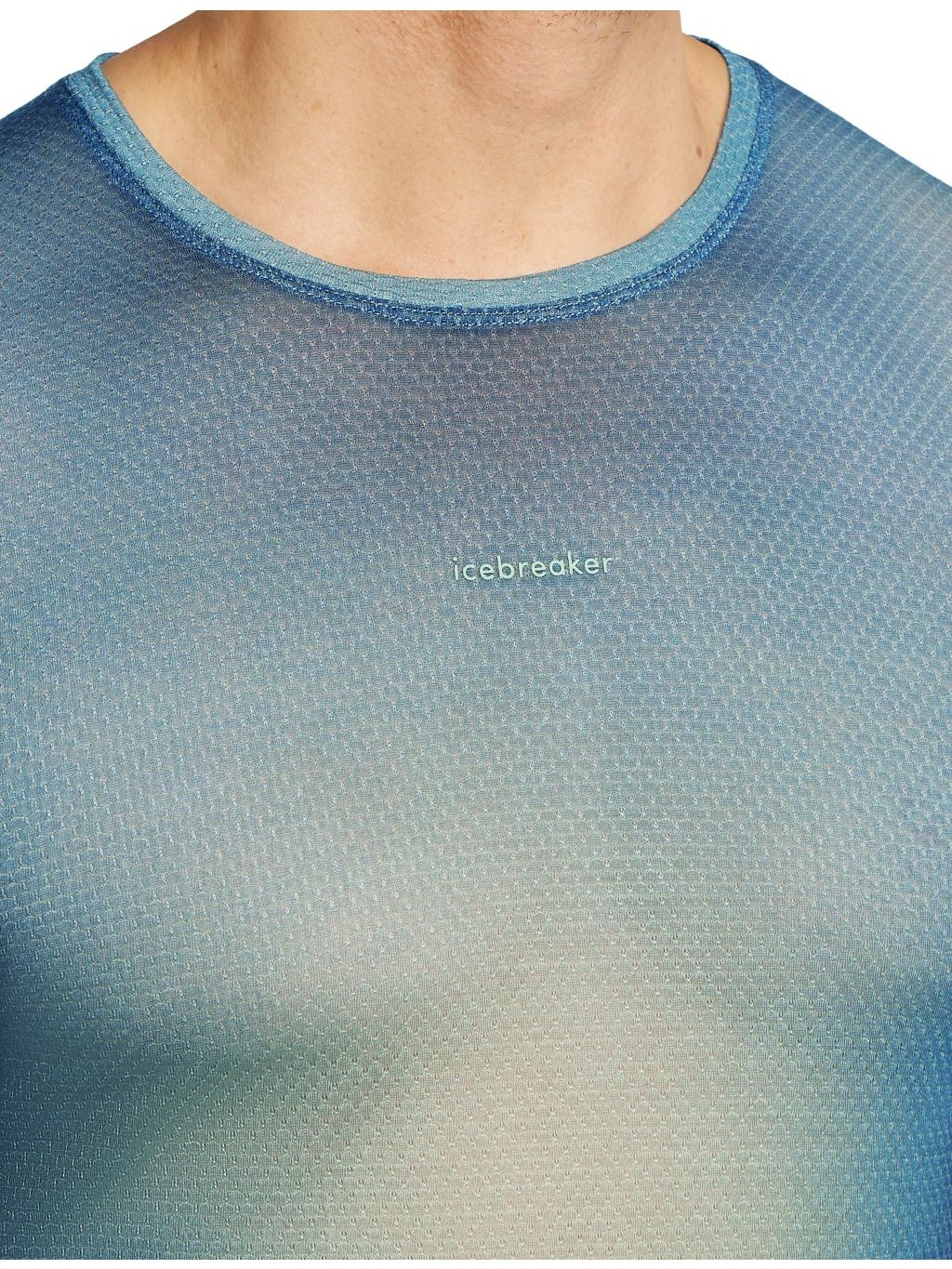 Pánské merino triko s krátkým rukávem ICEBREAKER Mens Mer 75 Cool-Lite Feather SS Crewe AOP, Atlan/Flintblue/Seagl/Aop